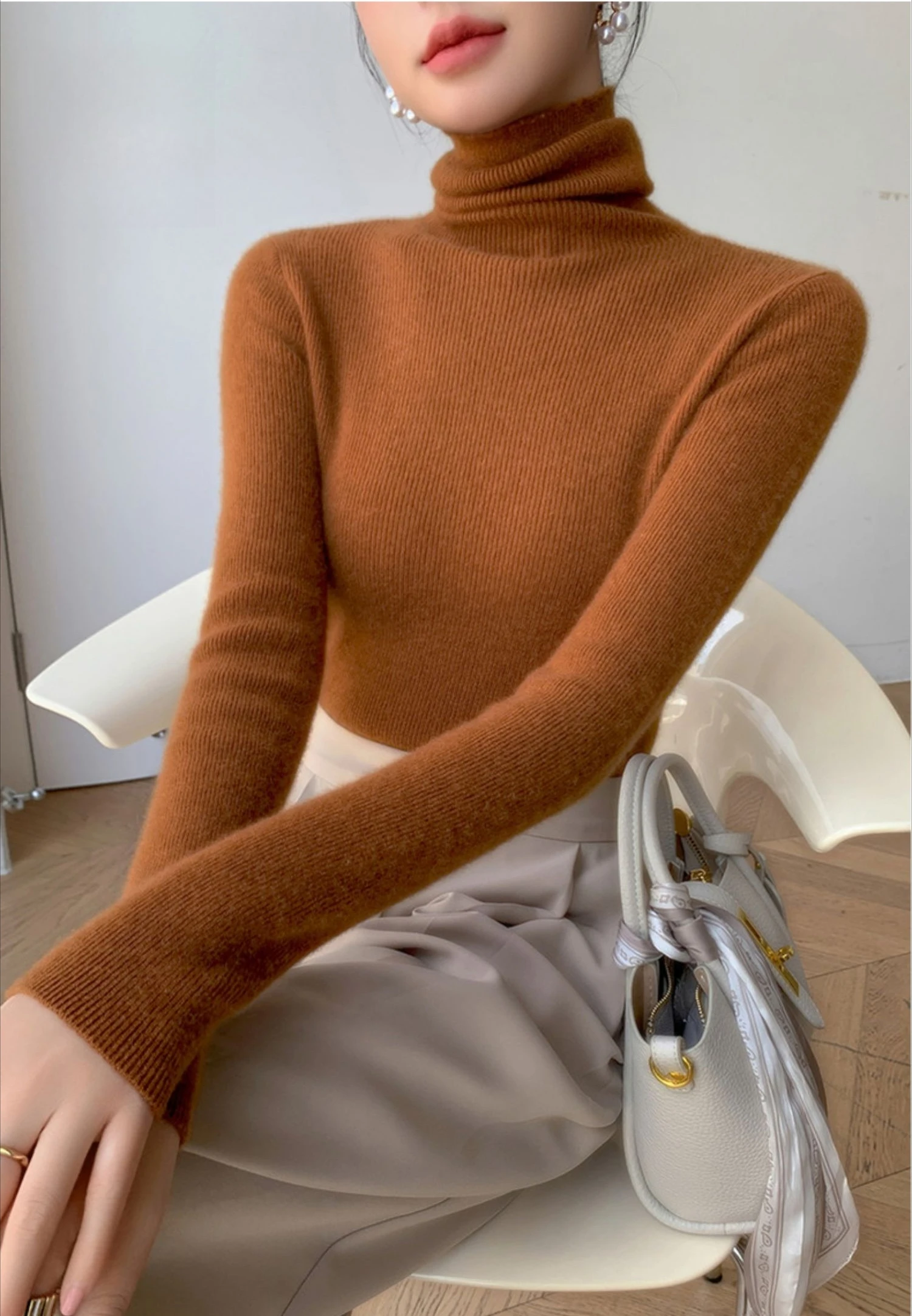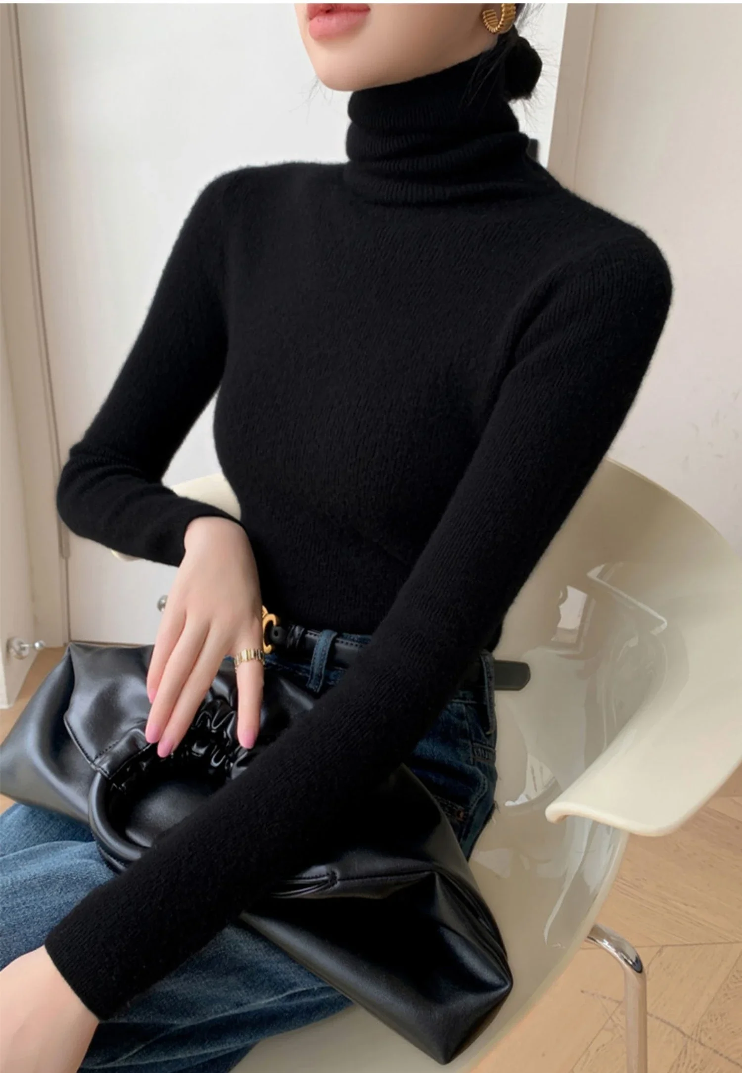 Women Long Sleeve Knitted Pullover Solid Casual Slim Sweater 2025 Autumn Winter Turtleneck Warm Jumper Simple Base Layer Top
