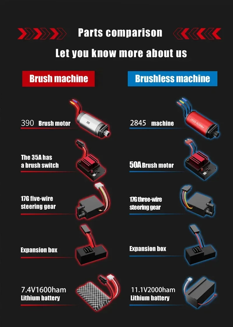 4. 2.4G full-scale synchronous remote control system. Full-scale throttle/steering;