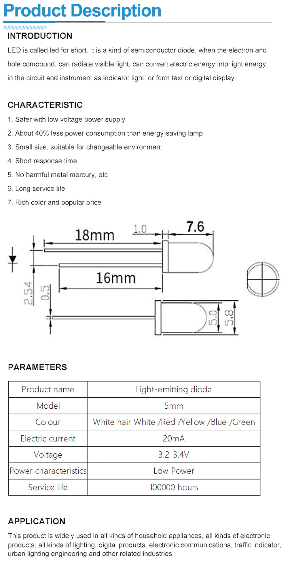 100pcs 3mm 5mm LED Light White Yellow Red Green Blue Assorted Kit DIY LEDs Set electronic diy kit
