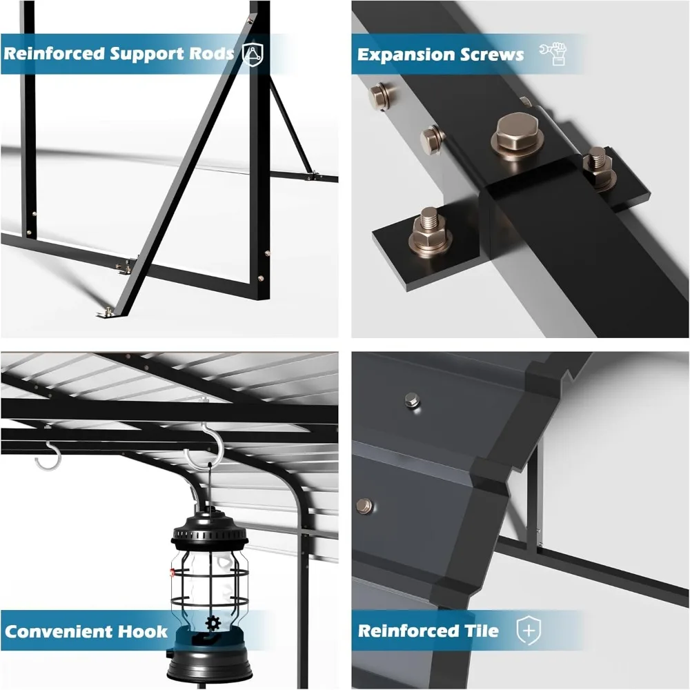 - Versatile Outdoor Use: With its spacious 10x15 footprint, whether your vehicle is a large pickup truck or tractor on land, a small motorcycle or car, or even a light motorcycle at sea, our thick metal garage can provide you with a safe and stable parking space. The metal carport is not merely a parking place, our garage can also serve as a temporary shelter for outdoor gatherings and exhibitions