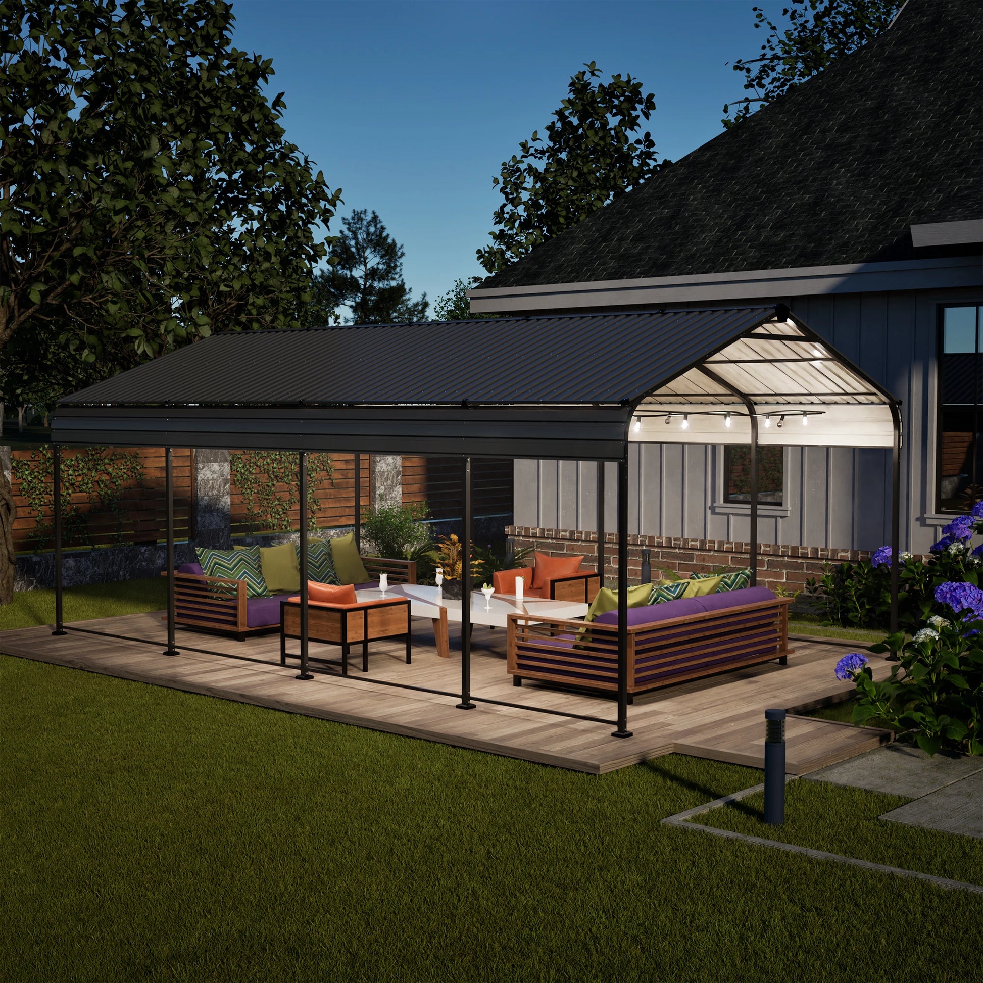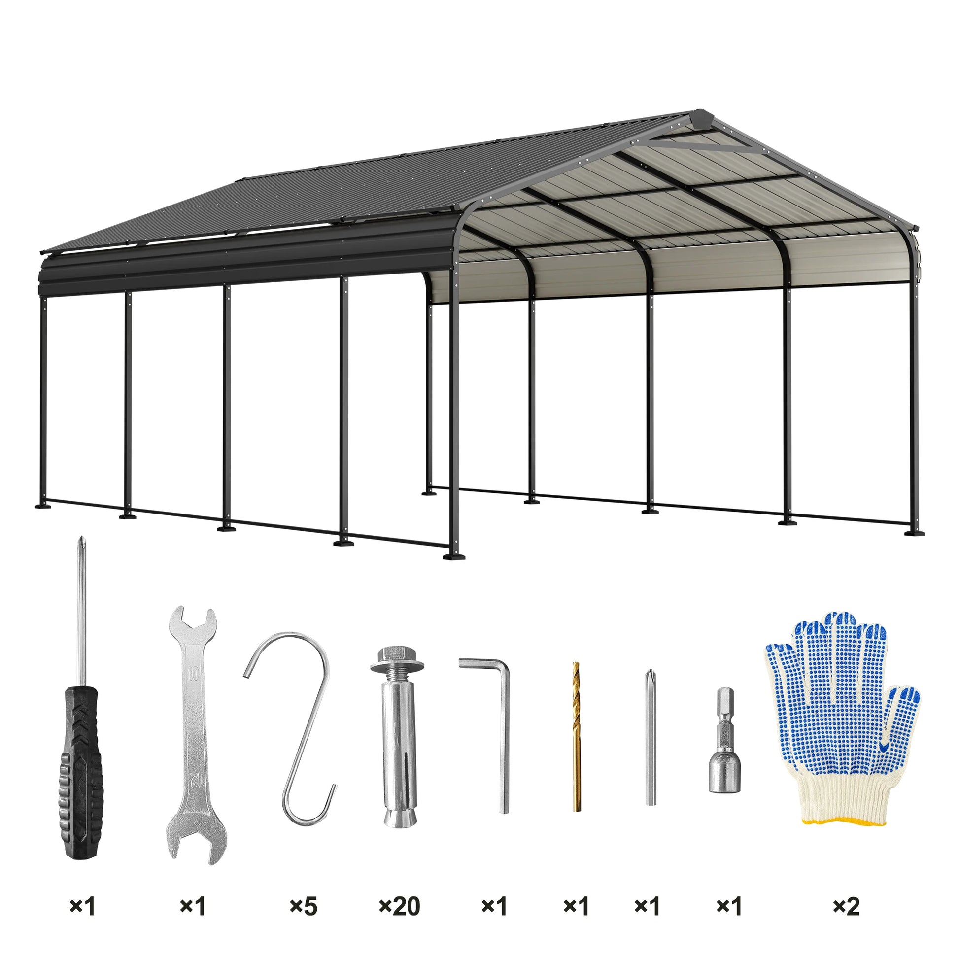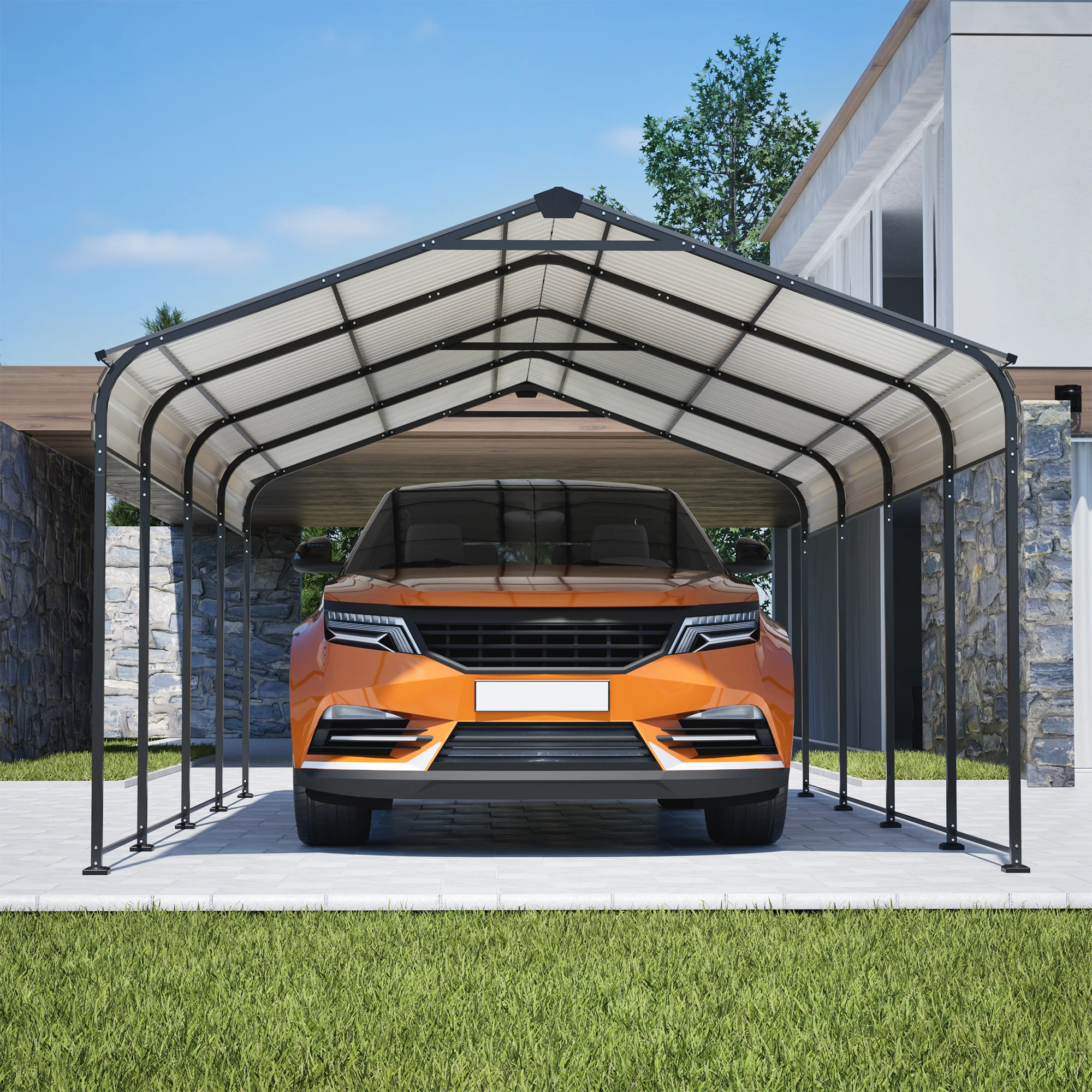 12x20 FT Heavy Duty Metal Carport, All-Weather Galvanized Steel Shelter for Cars, Trucks, Boats & SUVs in Black