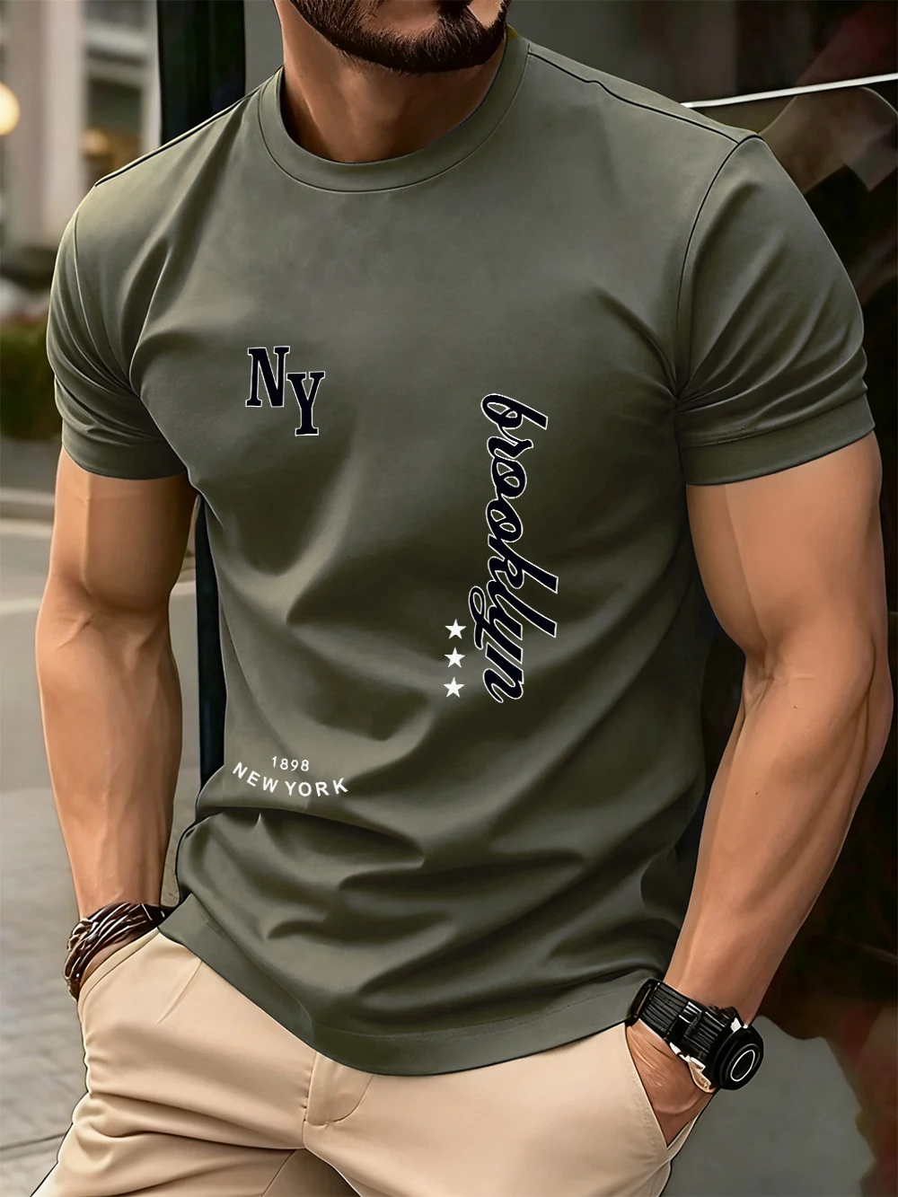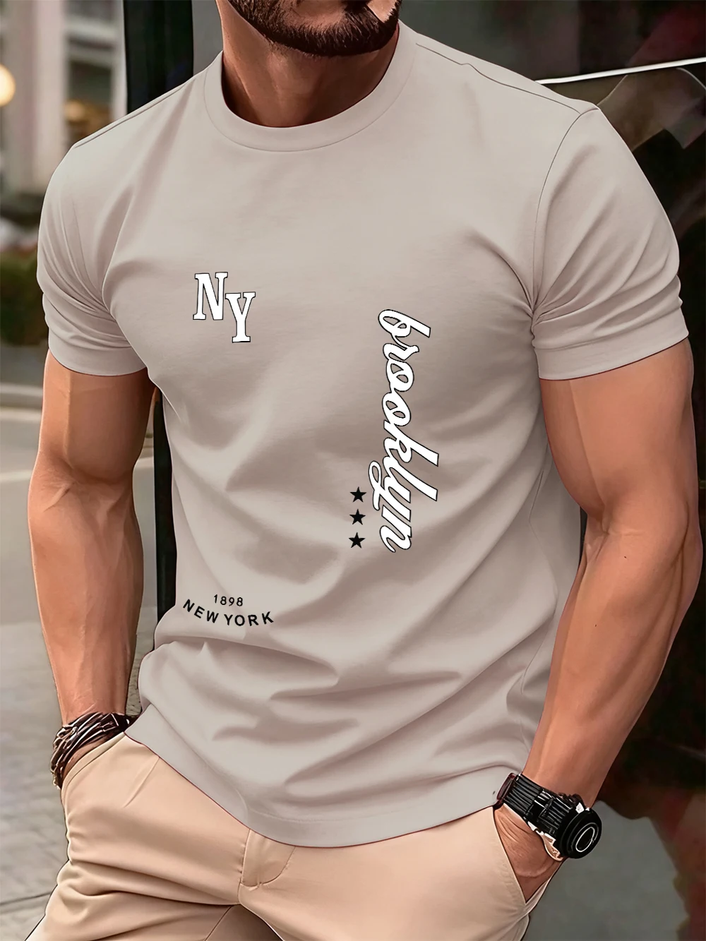 1898 New York Brooklyn Prints Cotton T-Shirts Men Summer Oversized O-Neck T Shirt Comfortable Short Sleeve Tops Basic Clothes