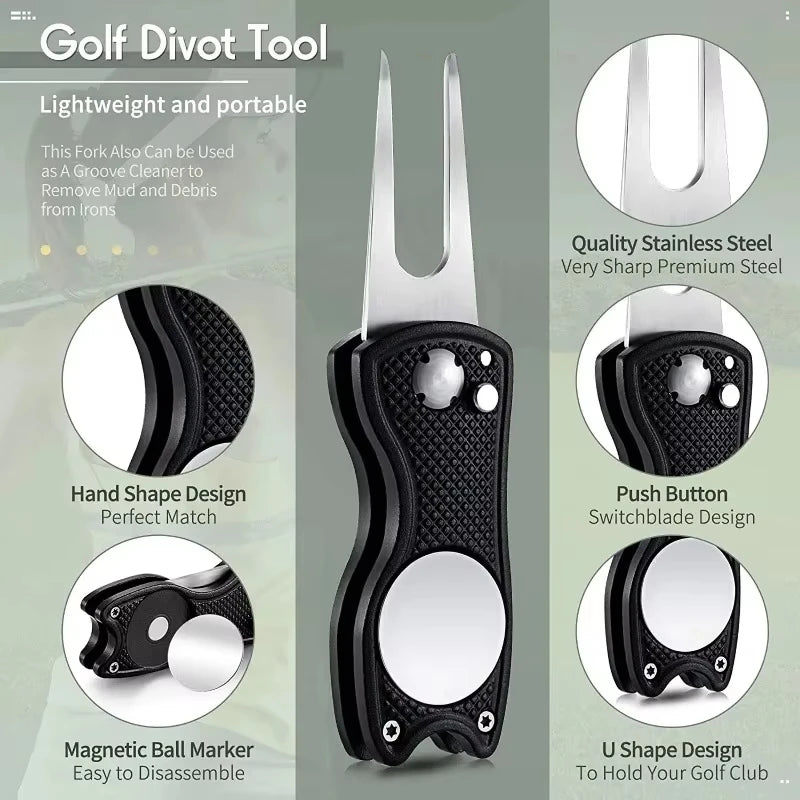 1PC Foldable Metal Golf Turf Repair Tool With Magnetic Ball Marker And Pop-Up Button For Golf Green Fork Golf Tool