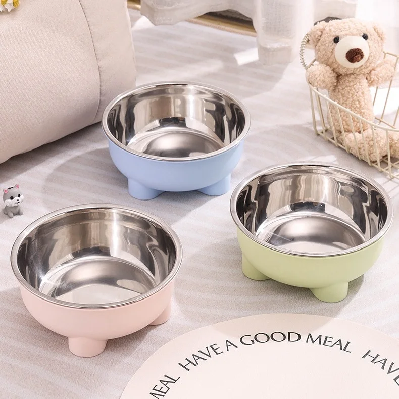 1PC Four-Legged Solid Color Stainless Steel Pet Dog Bowl And Cat Bowl For Indoor And Outdoor Use