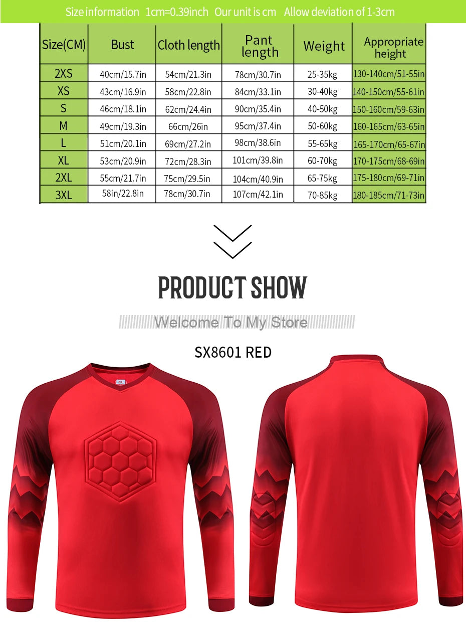 2021 New Uniform Men's Football Training Goalkeeper Uniform Kids Soccer Jersey Set Long Sleeve Protective Sponge Shirt Pants