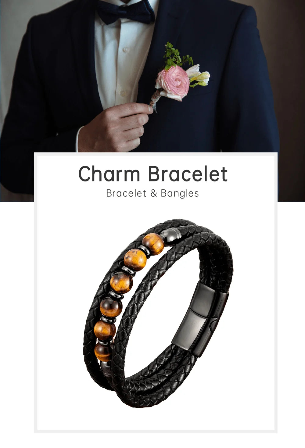 2021 Trendy Multilayer Leather Bracelets Men Jewelry 9 Style Round Stone 8mm Beaded Bracelets For Male Women Valentine Day Gifts
