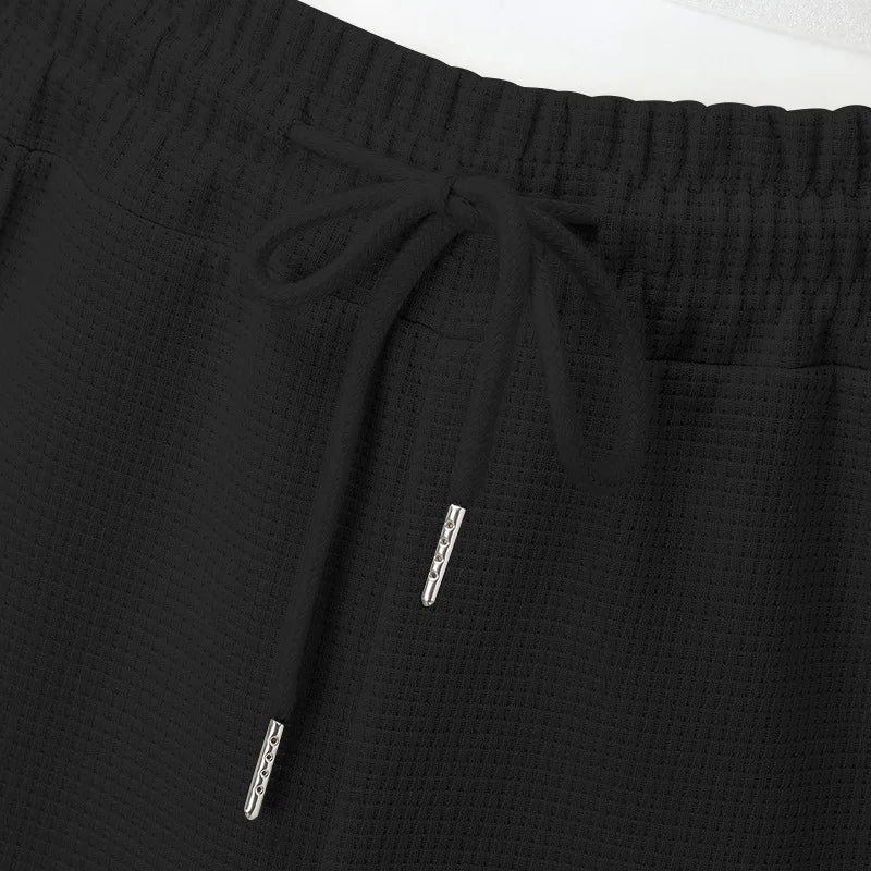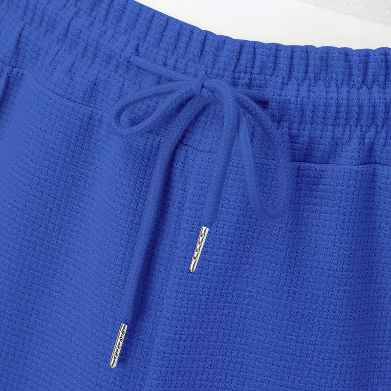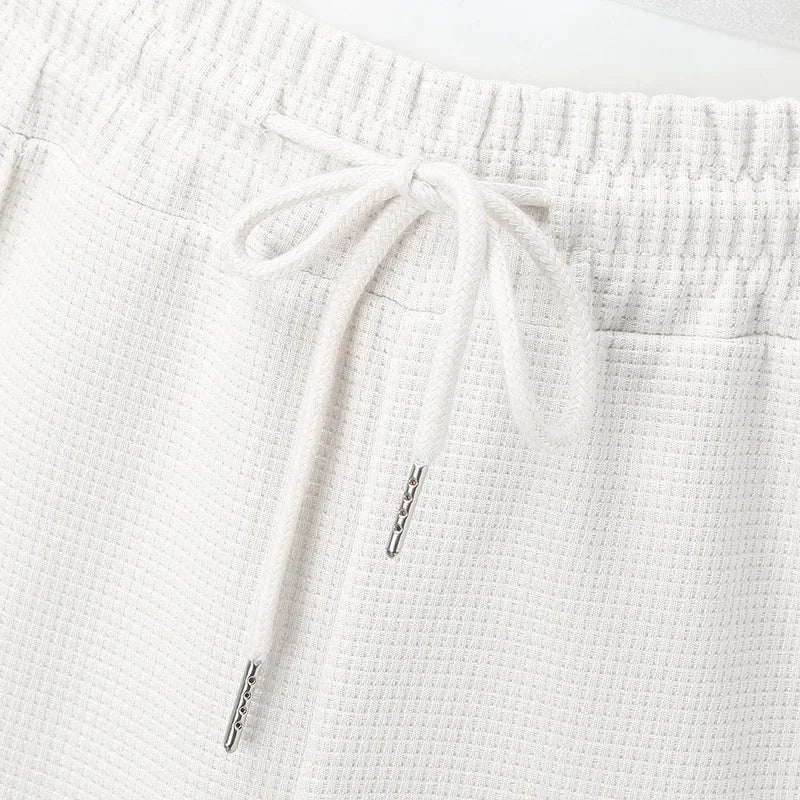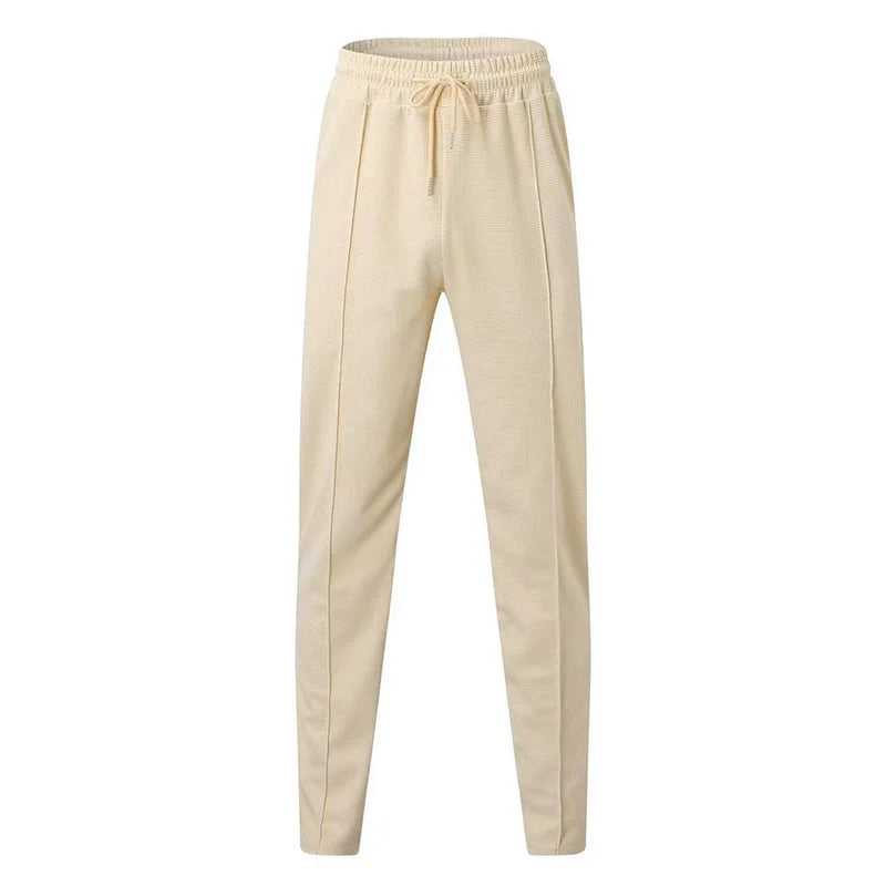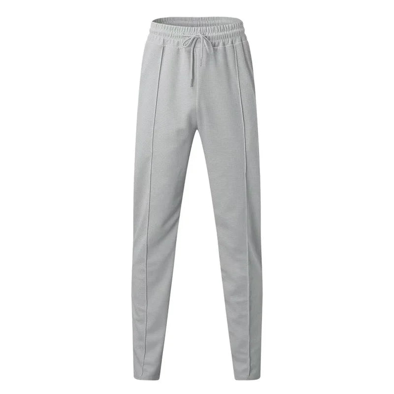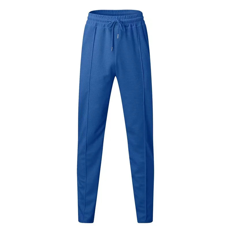 2024 men's new waffle long-sleeved lapel zipper cardigan casual sports suit