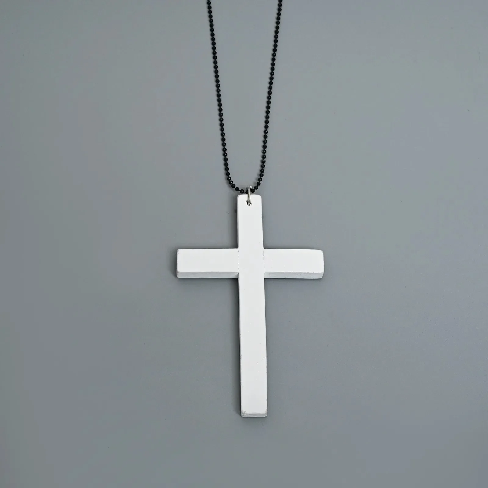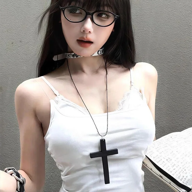 2025 New Cool Punk Gothic Wood Cross Pendant Necklace for Women Men Vintage Black White Hip Hop Y2k Necklace Party Jewelry Gift