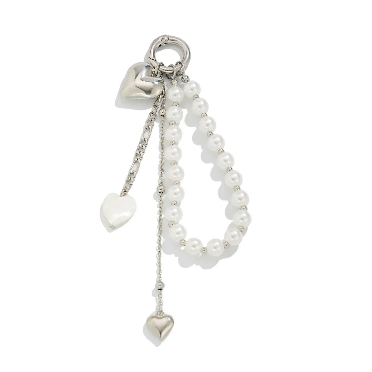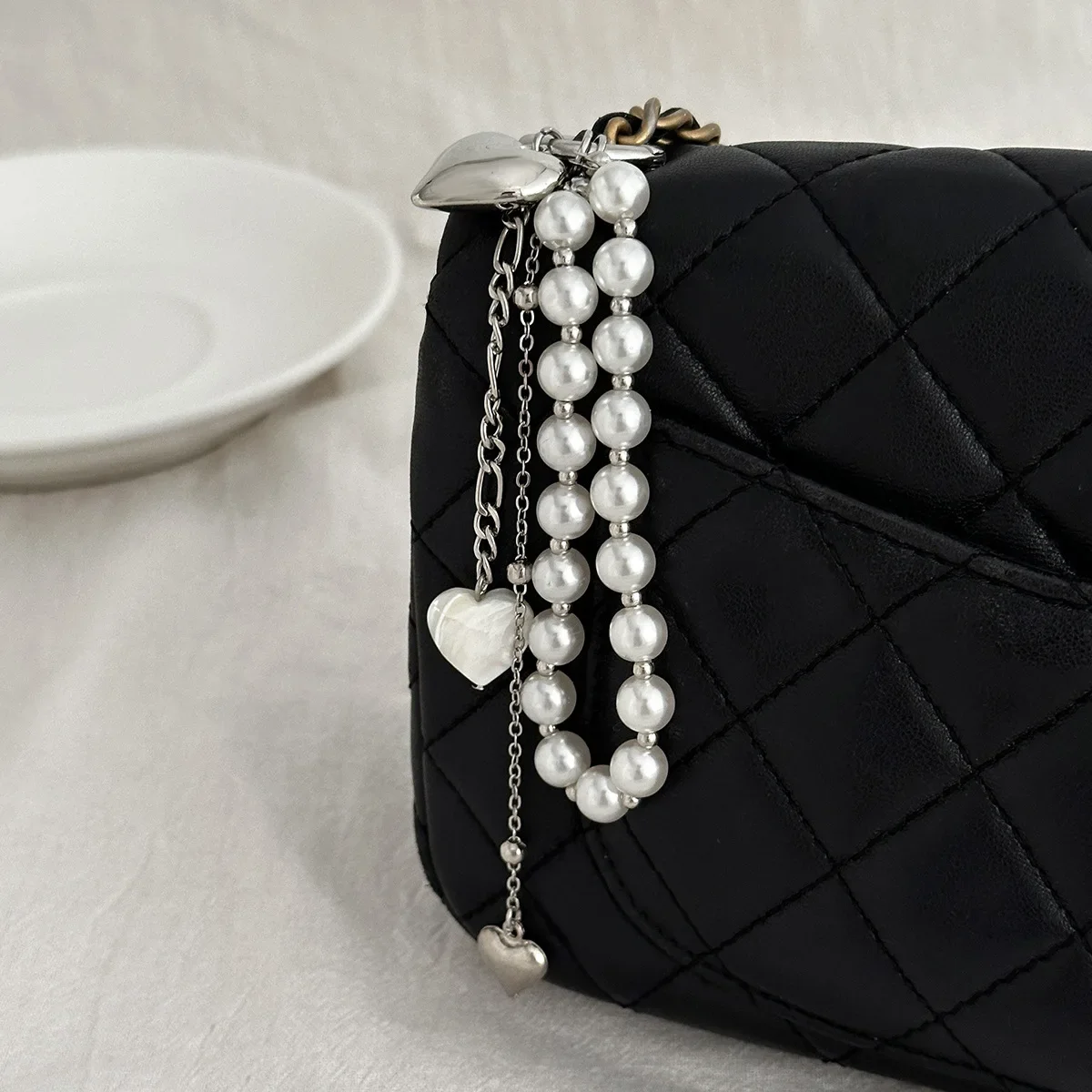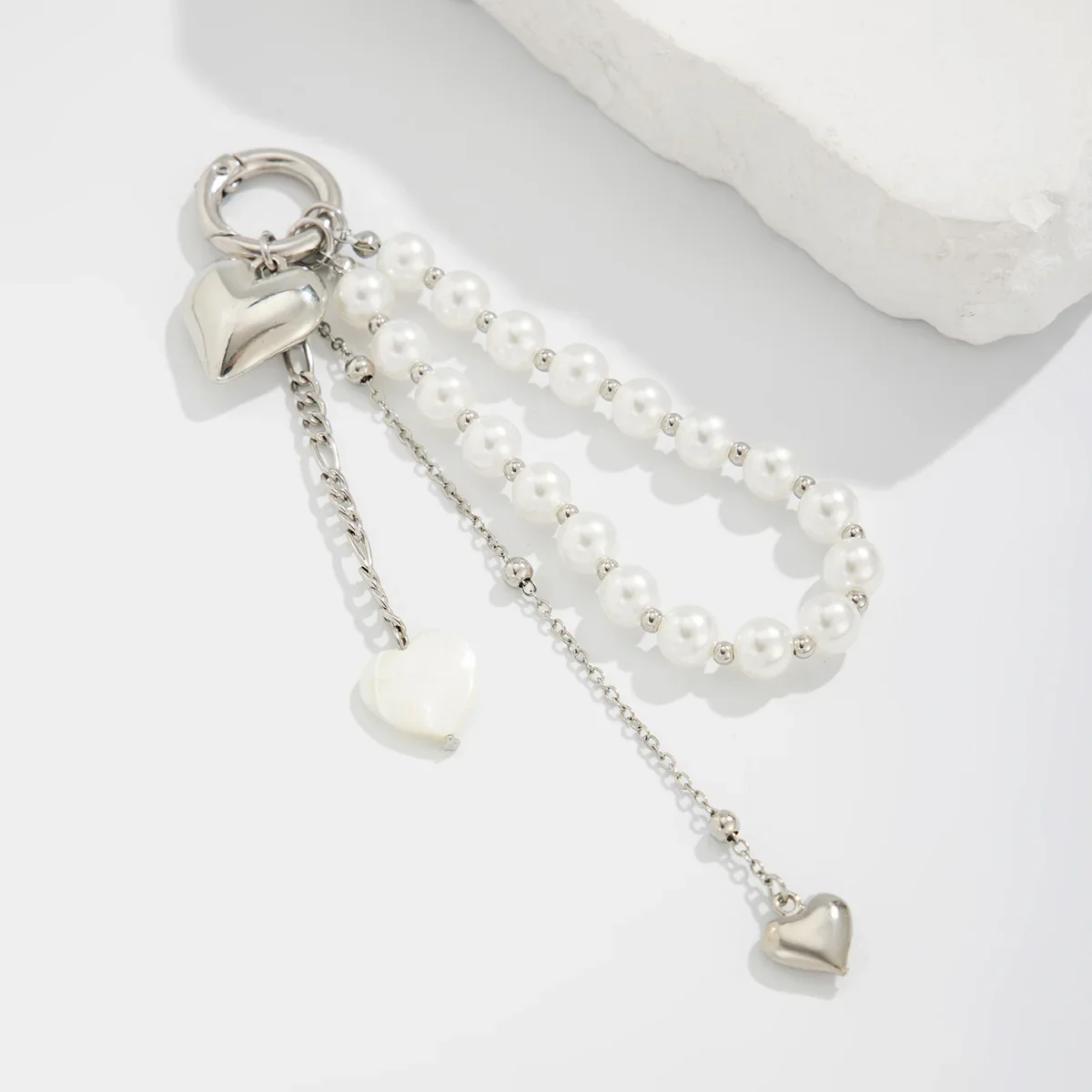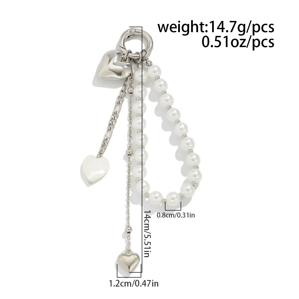 2025 New Pearl Beadeds Chain Keychain Ccb Peach Heart Bead Bag Chain Pendant Jewelry Accessories Daily Wear Keychain Gifts