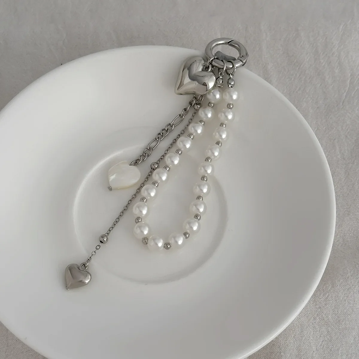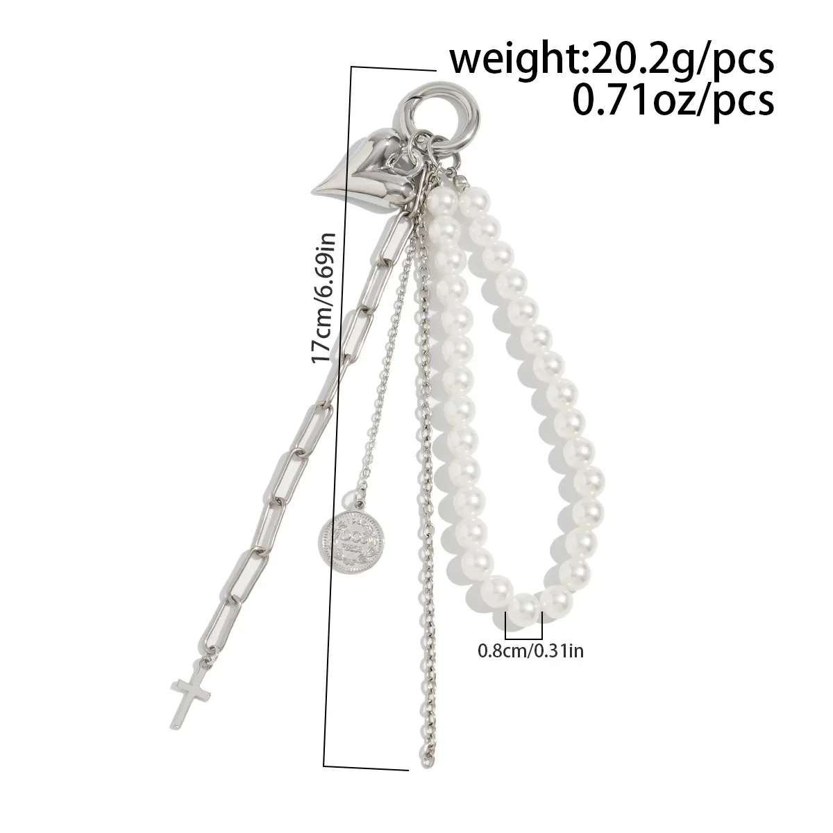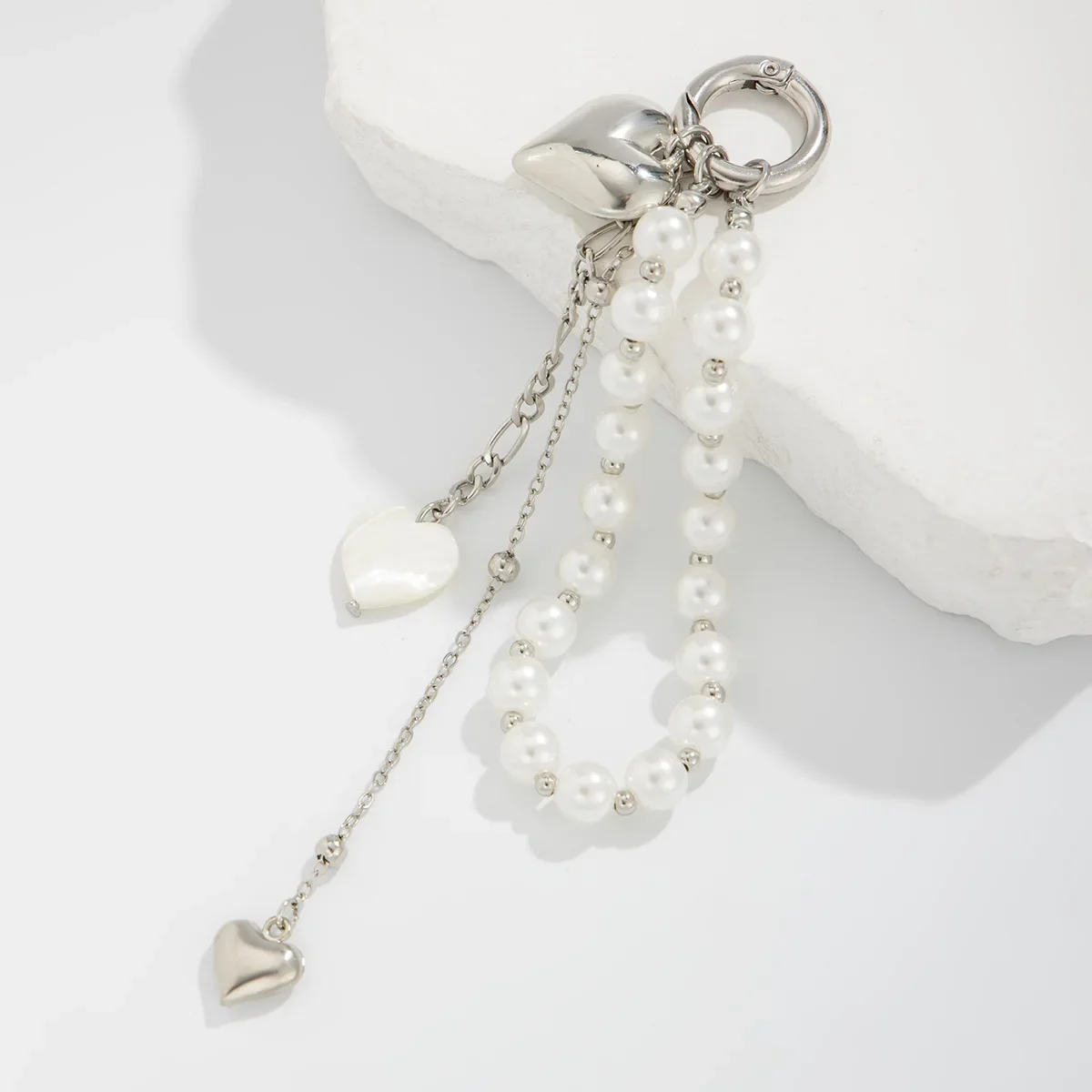 2025 New Pearl Beadeds Chain Keychain Ccb Peach Heart Bead Bag Chain Pendant Jewelry Accessories Daily Wear Keychain Gifts