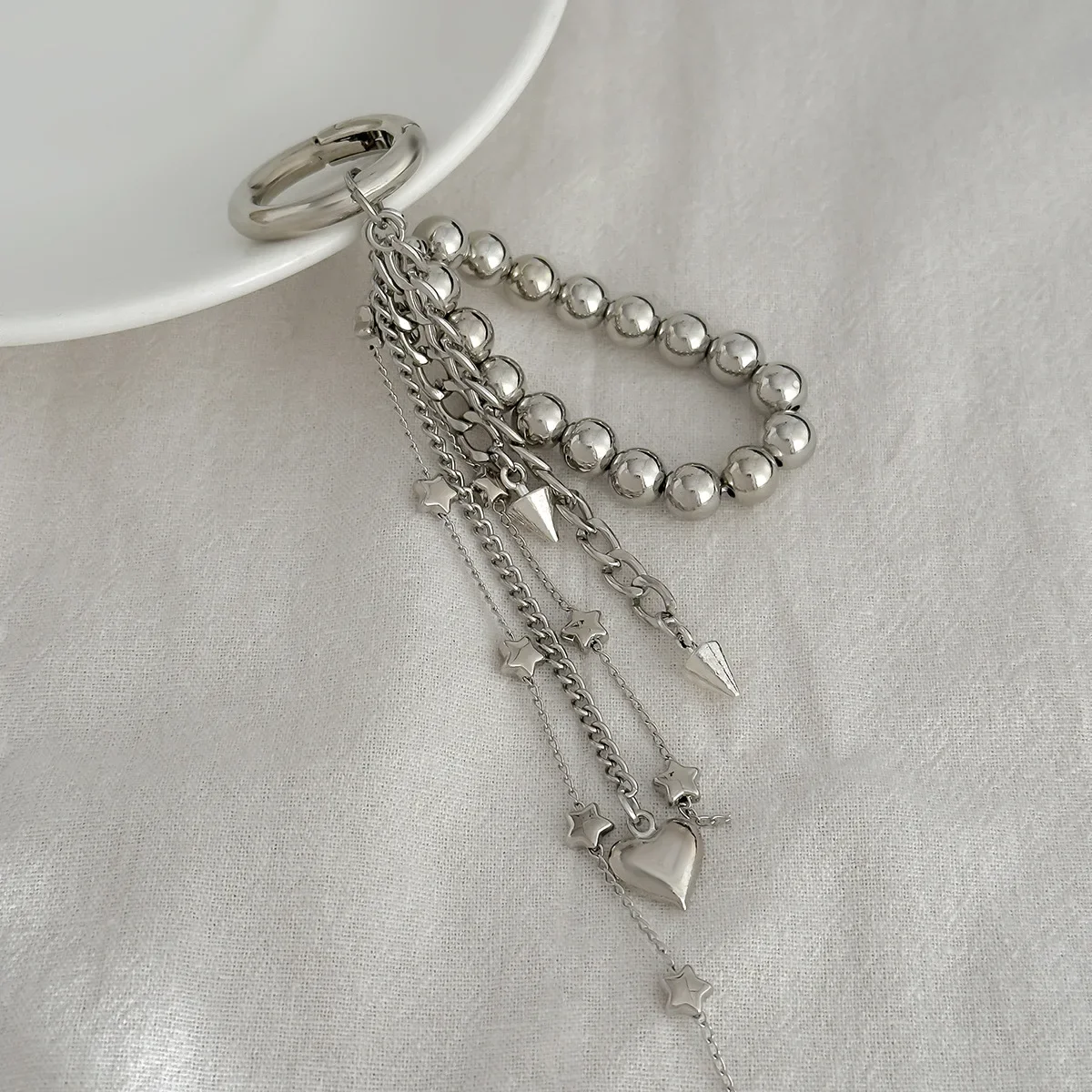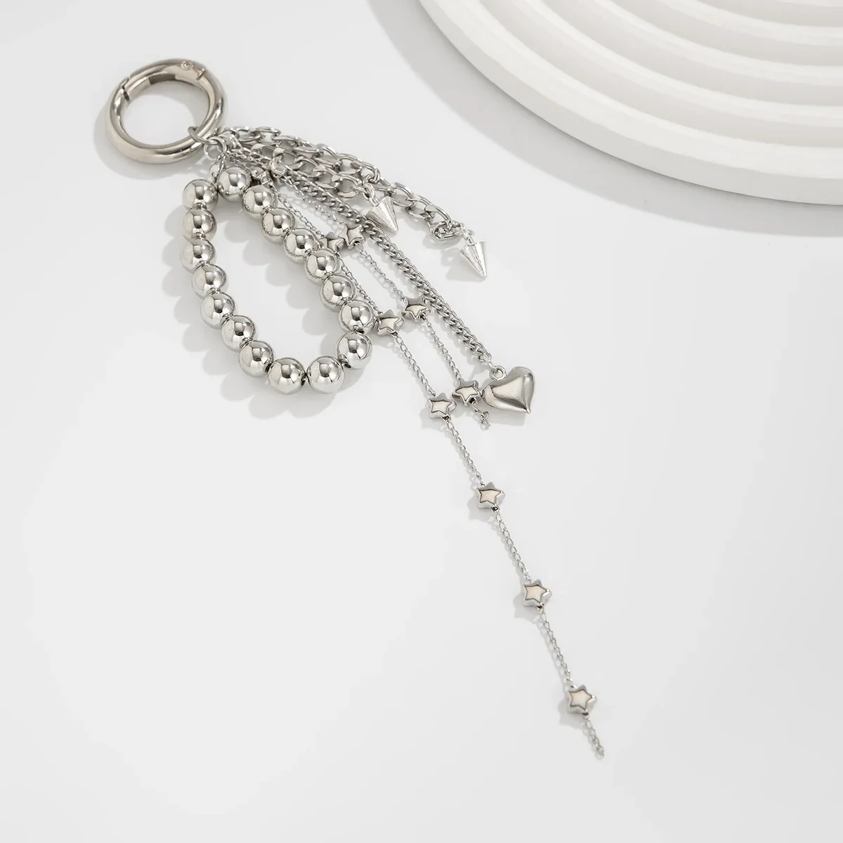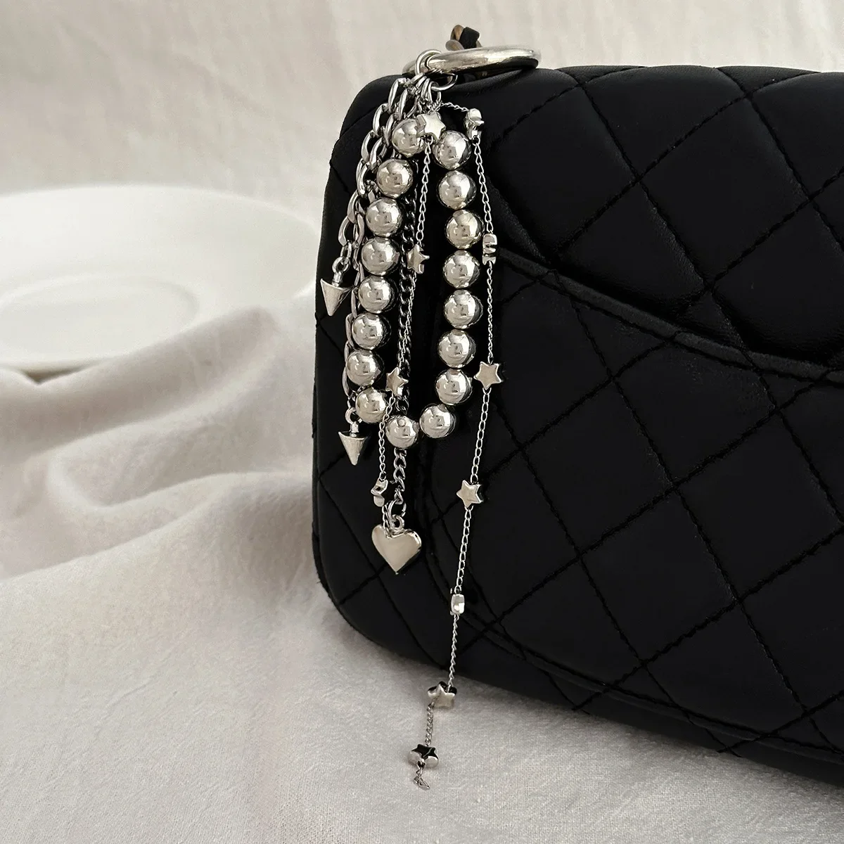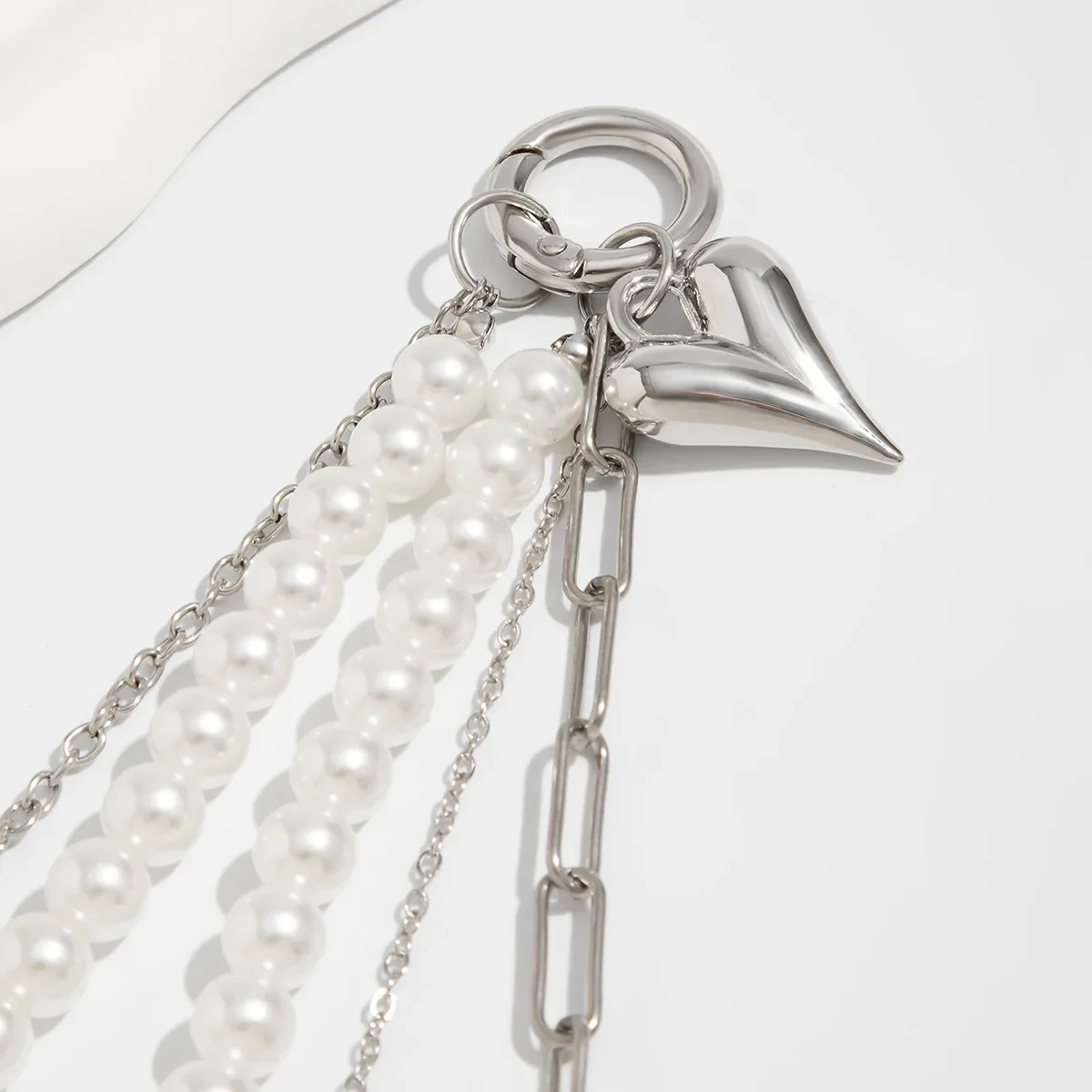 2025 New Pearl Beadeds Chain Keychain Ccb Peach Heart Bead Bag Chain Pendant Jewelry Accessories Daily Wear Keychain Gifts