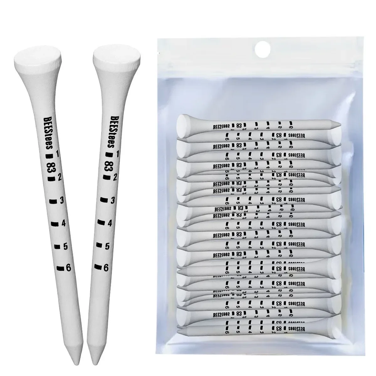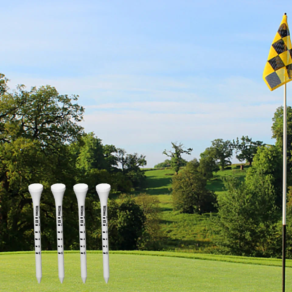 50 Pieces Bamboo Golf Tees 83mm White & Black Adjustable Depth Side Spin Reduction Friction Degree Scale Tees