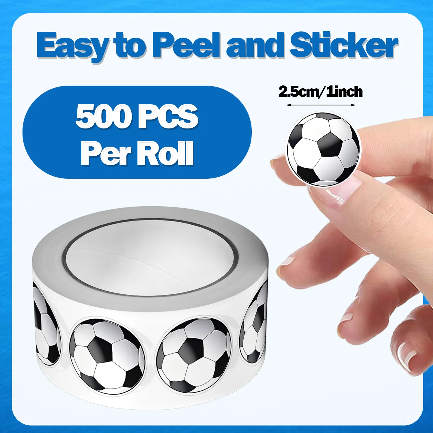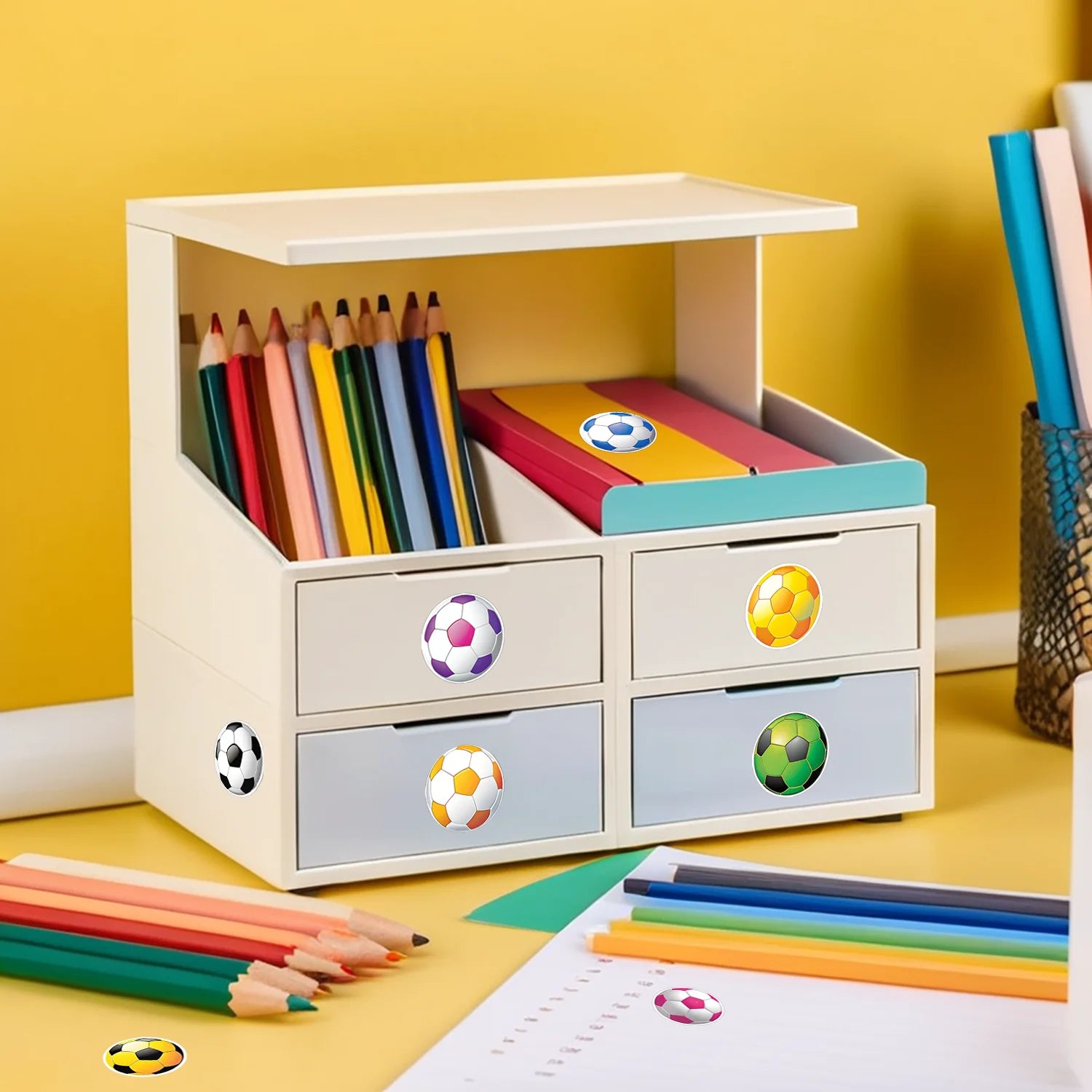 500Pcs/Roll Colorful Footballs Soccers Sport Stickers 2.5cm/1.0'' 16 Designs Decals Diy Adorn Gifts for Various Packaging
