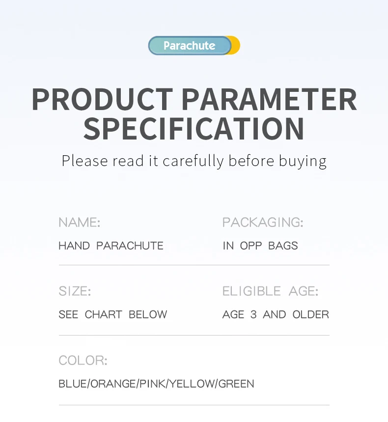 Six Colors:The parachute toy have 6 colors,including blue,green,yellow,red and orange,pink,This parachute can be shared as a gift to your friends or family,it can also be exchanged as gift between you and your classmates.