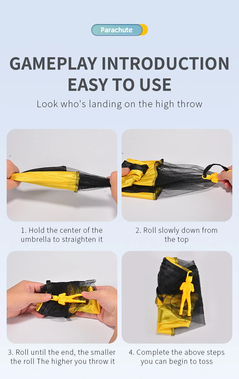 Great Gifts: :No more strings tangled playing with this educational toy, Unisex design fits for boys and girls, best parachutes gifts for kids at holidays, such as, New Year, Christmas, Birthdays, Easter Day or party favors for children.