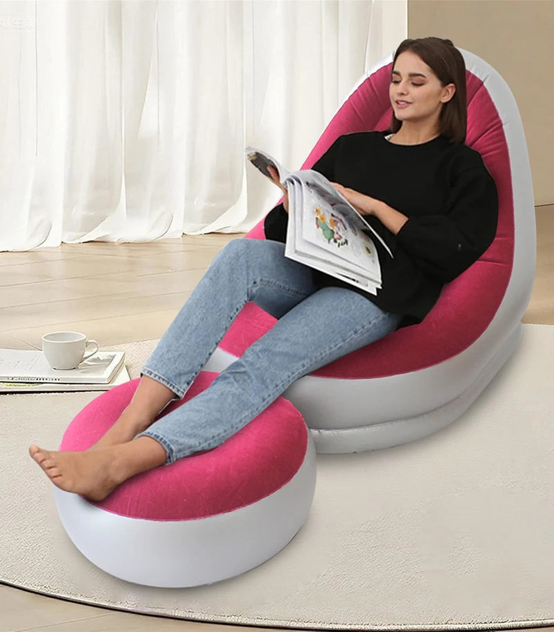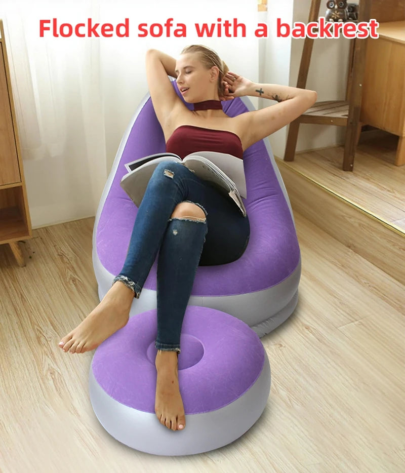 6 Colors Inflatable Lazy Sofa with Footstool Portable Beach Lounge Chair Foldable Air Mattress Outdoor Camping Sleeping Pad