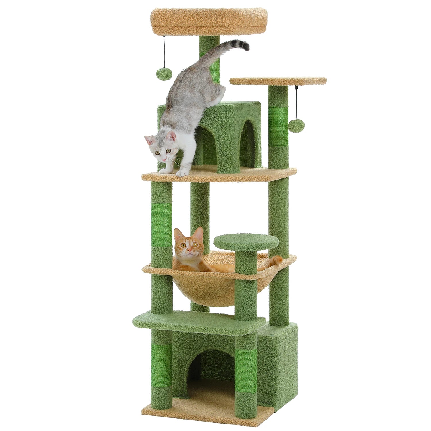 Spacious and Comfortable: At 136 cm in height, this cat tree offers ample space with cozy hammocks and condos, ensuring your cat can stretch, lounge, and nap comfortably.