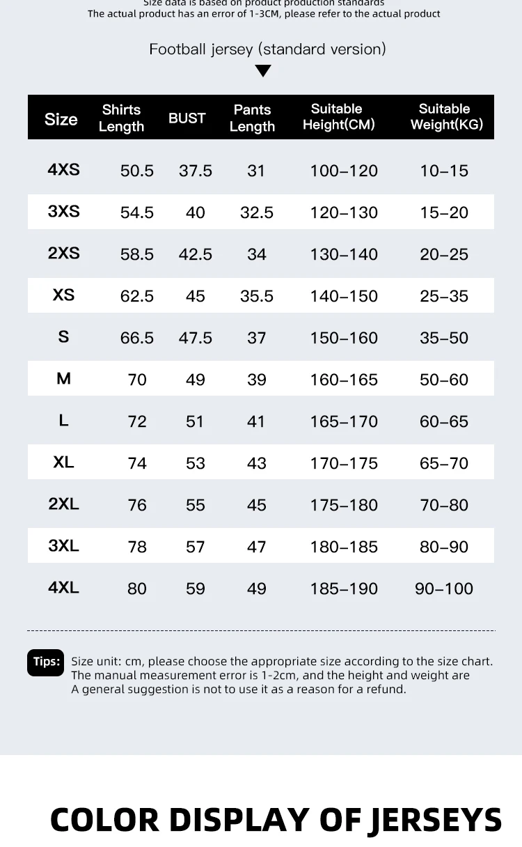 Kids size XS: suitable for kids height 140-150cm, weight 25-35kg;