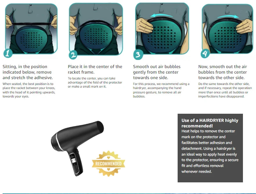 【Design】The protector features a flexible and universal design that conforms perfectly to the racket frame.