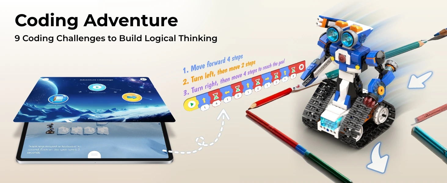 Master coding with the intuitive, icon-based app interface! Kids can explore loops, variables, and problem-solving through exciting activities designed for each model. A fun way to develop critical thinking, logic, and STEM skills while creating endless play possibilities.