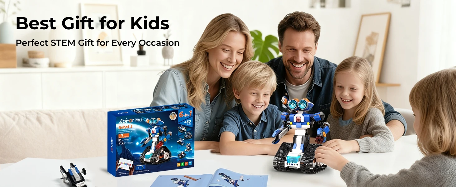 A great birthday gift, holiday surprise, or Christmas present, this popular 6-in-1 Stem engineering robot set will promote hands-on fun and engaging excitement, helping your child grow, learn, and enjoy early learning.