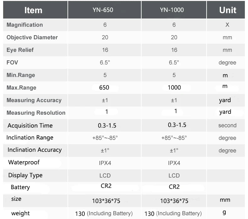 Measuring range: 5-650 ,5-1000m