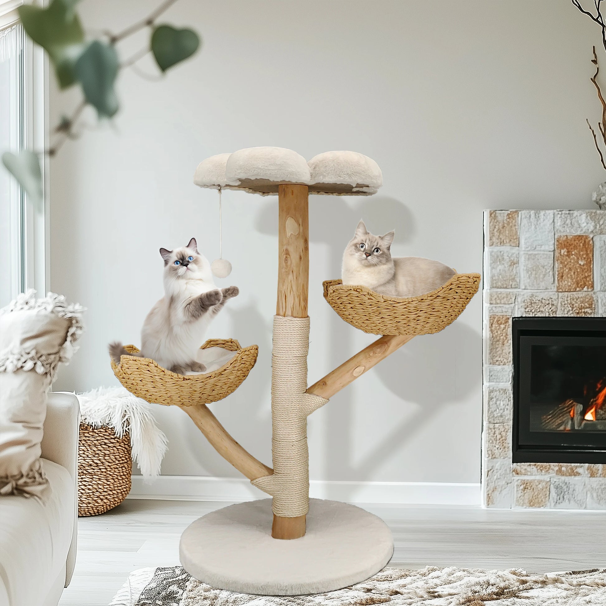 Material: Plush (Polyester) + Sisal Rope + Paper String + Particle Board + Willow Wood