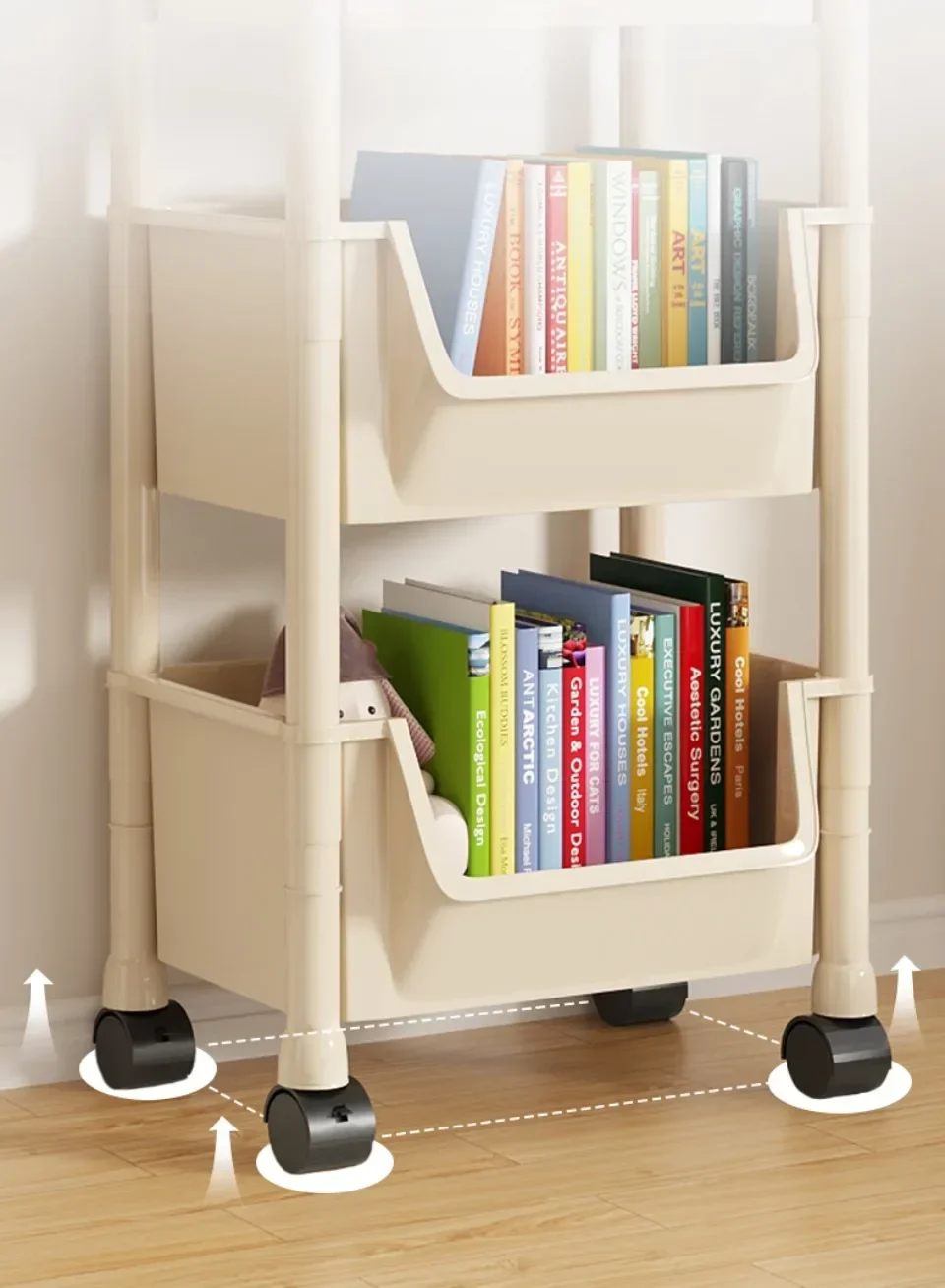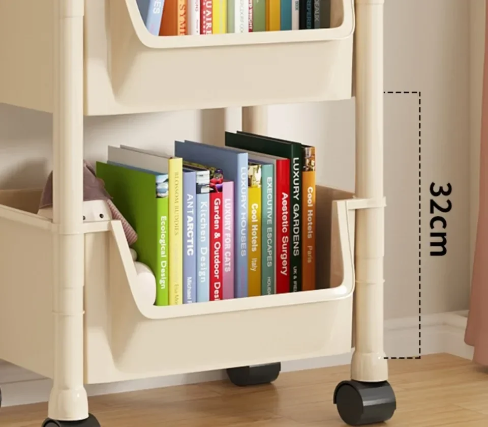 Bookshelf With Wheels Multi-Layer Movable Trolley Home Snack Organizer Shelf Kitchen Vegetable Basket Bedroom Mobile Cart Racks