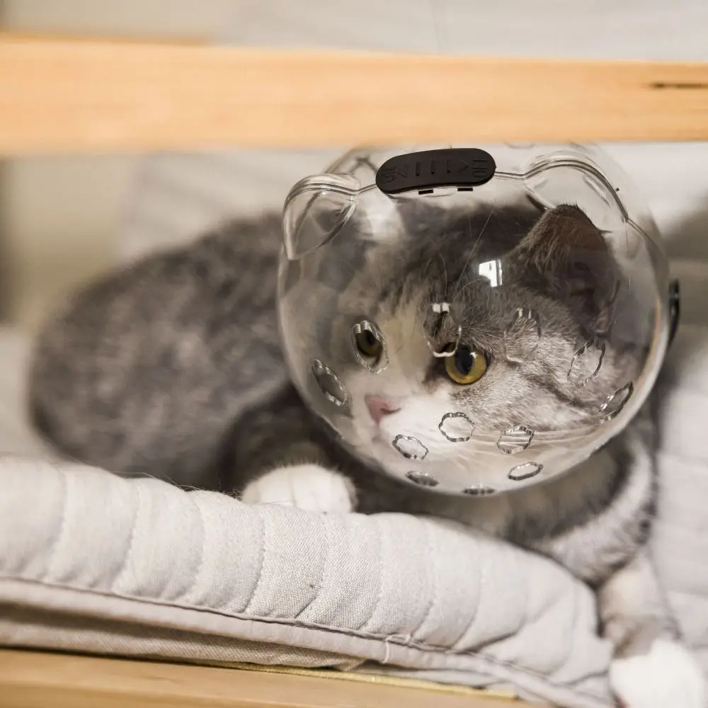 Designed with a transparent ball-shaped appearance, this grooming hood helps prevent cats from licking wounds after surgery or biting caregivers during grooming sessions. It also effectively protects the cat’s head and reduces accidental biting or scratching.