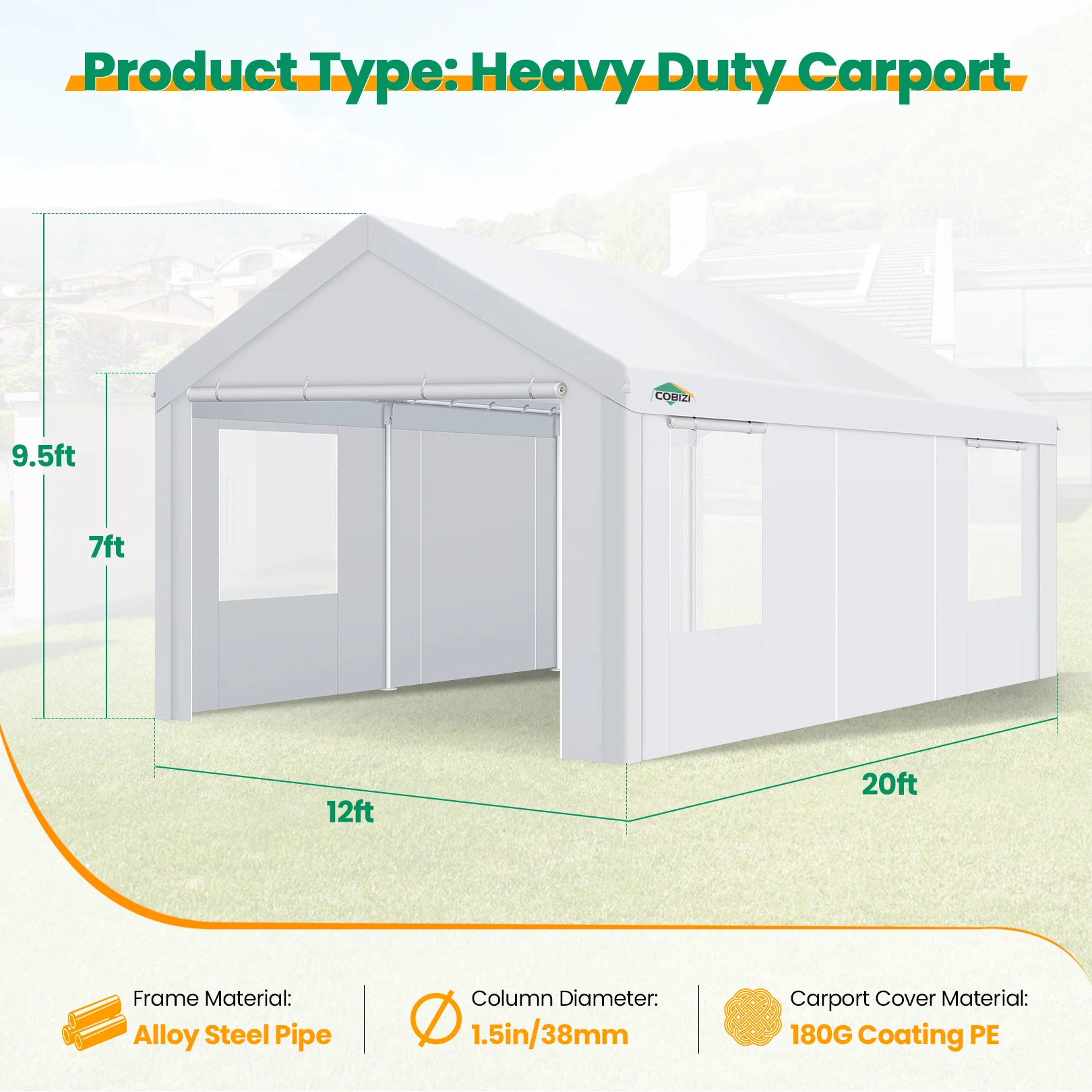 Carport Canopy 12x20 Heavy Duty Portable Garage with Roll-Up Ventilation Windows & Doors,Removable Sidewalls Car Canopy Car Tent