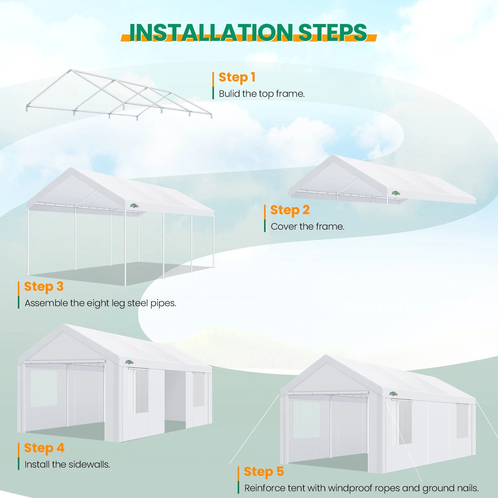 ✅ 【Easy Setup】 Carport canopy 12x20 heavy duty is packed in carton and cardboard for better protection, and comes with an easy-to-follow manual. Allowing 2 people to complete the installation in less than 1 hour. If you have any questions during installation and use, please feel free to contact us.