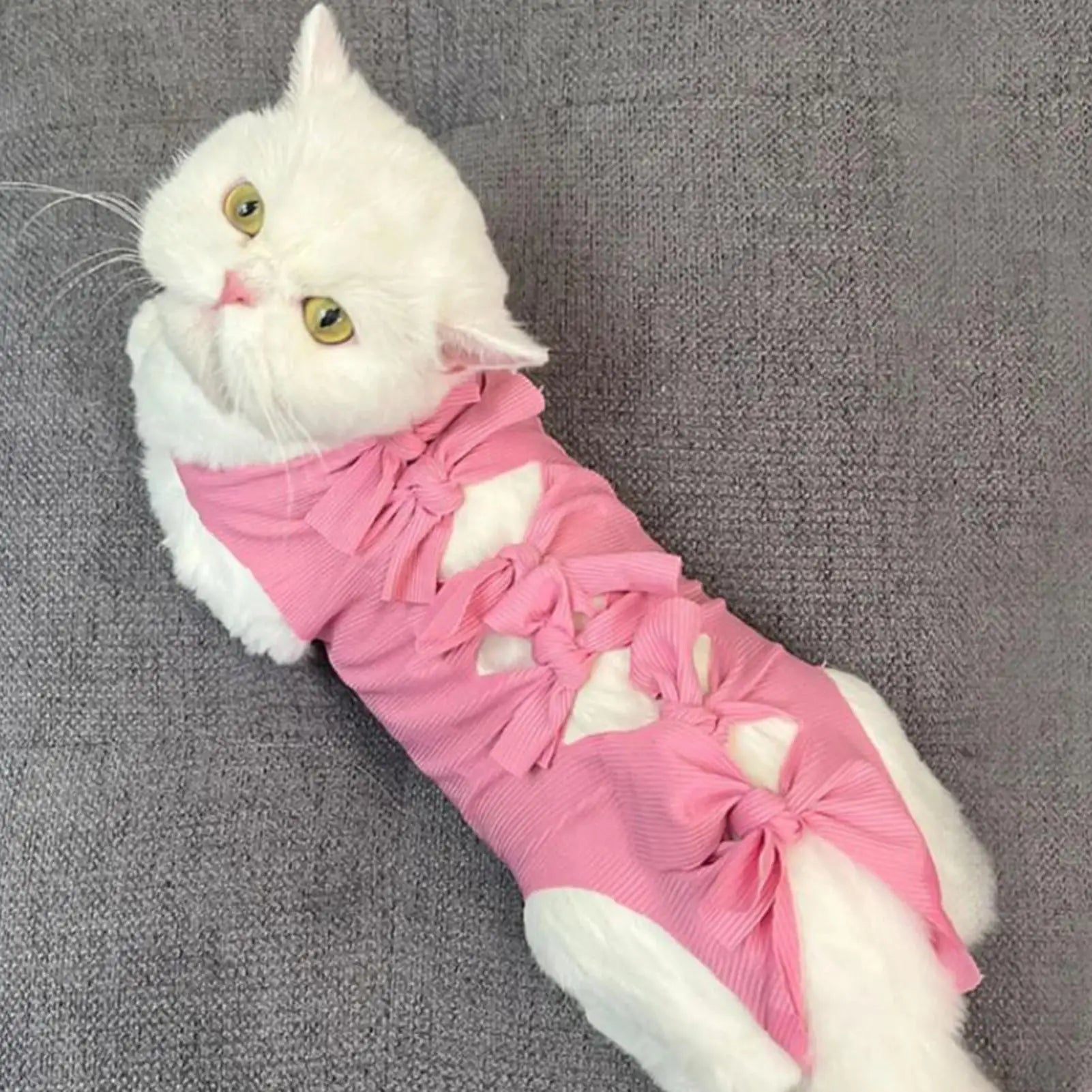 5.Comfortable Suit: With a secure sticker closure and well-designed leg openings, this recovery suit provides effortless dressing and reduces stress, keeping your cat calm and comfortable throughout the healing process