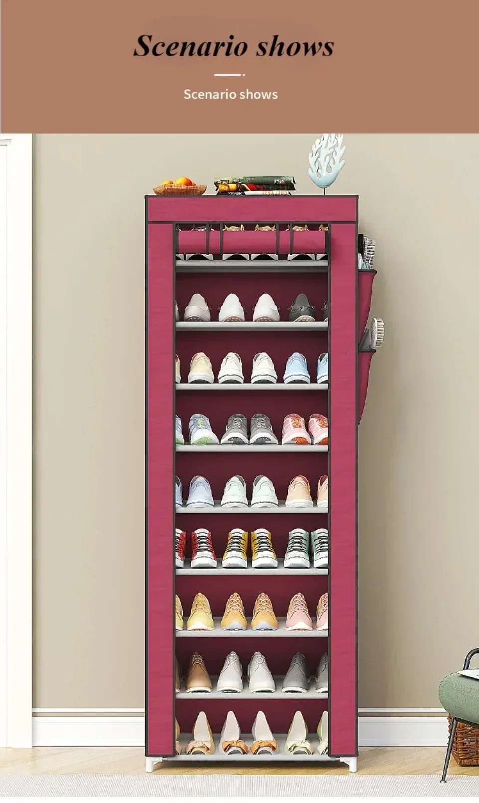 【Product Name]】10 layer solid color shoe cabinet