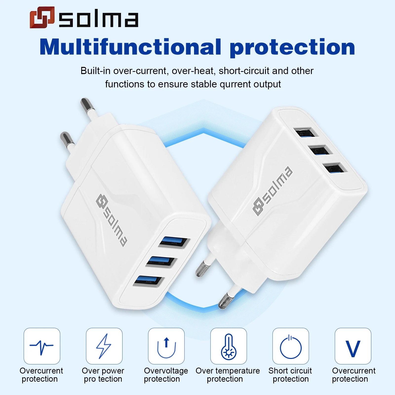 EU Standard 3 Ports USB Travel Charger Charge Led Wall Charging For iPhone 13 12 Samsung Xiaomi Mobile Plug Charging Adapter