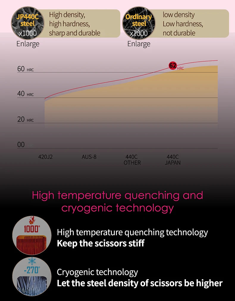 The scissors feature a 25-degree curved shear, suitable for trimming small to medium-sized dogs and cats. The ergonomic alloy handle provides a secure and comfortable grip for both male and female groomers. Each pair undergoes rigorous quality inspections to ensure no hair gets stuck and consistent performance.