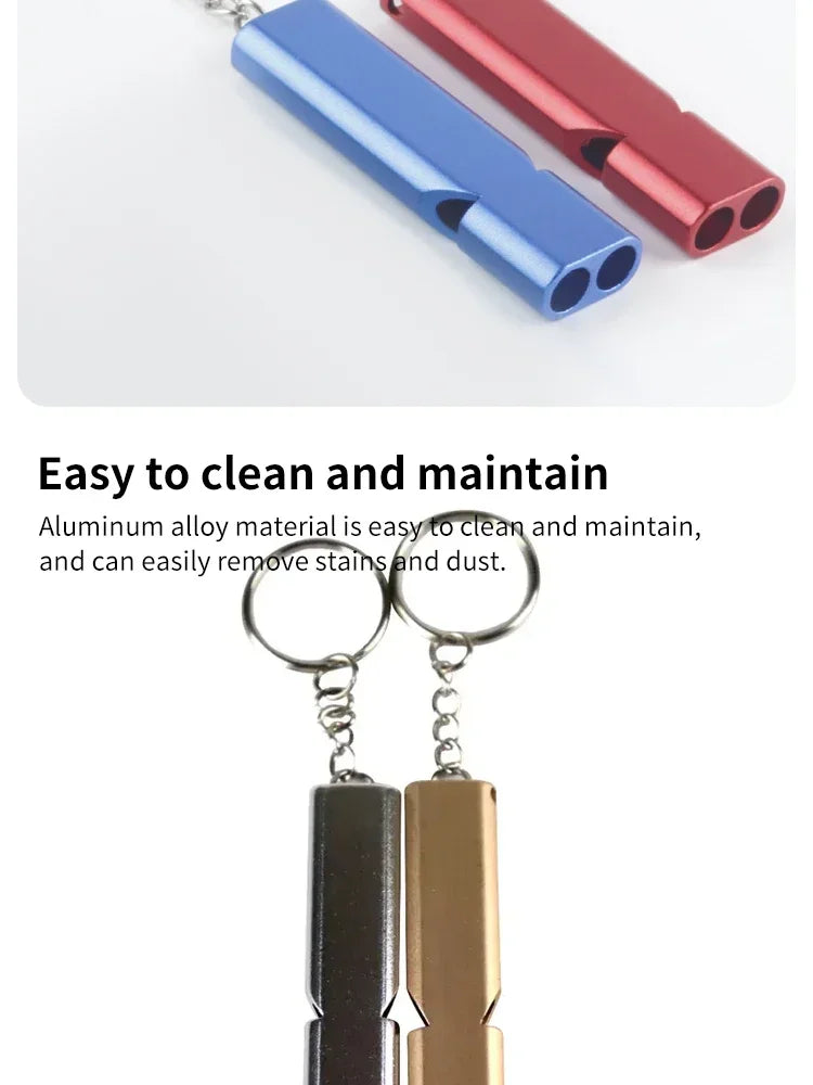 Flat Aluminum Alloy Dual Frequency Survival Whistle Double Tube Outdoor Survival Survival Whistle Equipment Equipped EDC Tool