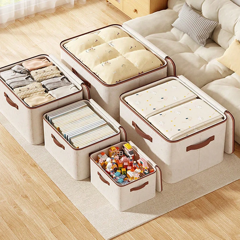 [Washable and Breathable Fabric] Made from high-quality, breathable cotton and linen blend, these organizers are ideal for storing clothes and linens. The entire box is washable for easy cleaning and durability.