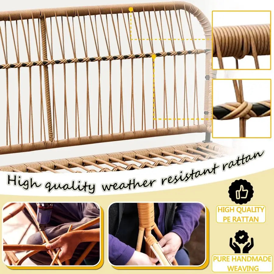 Sturdy and WeatherResistantMade from PE rattan wicker and a metal frame, this outdoor loveseat withstands various weather conditions and has a remarkable loadbearing capacity of 400 lbs, ensuring longlasting use.