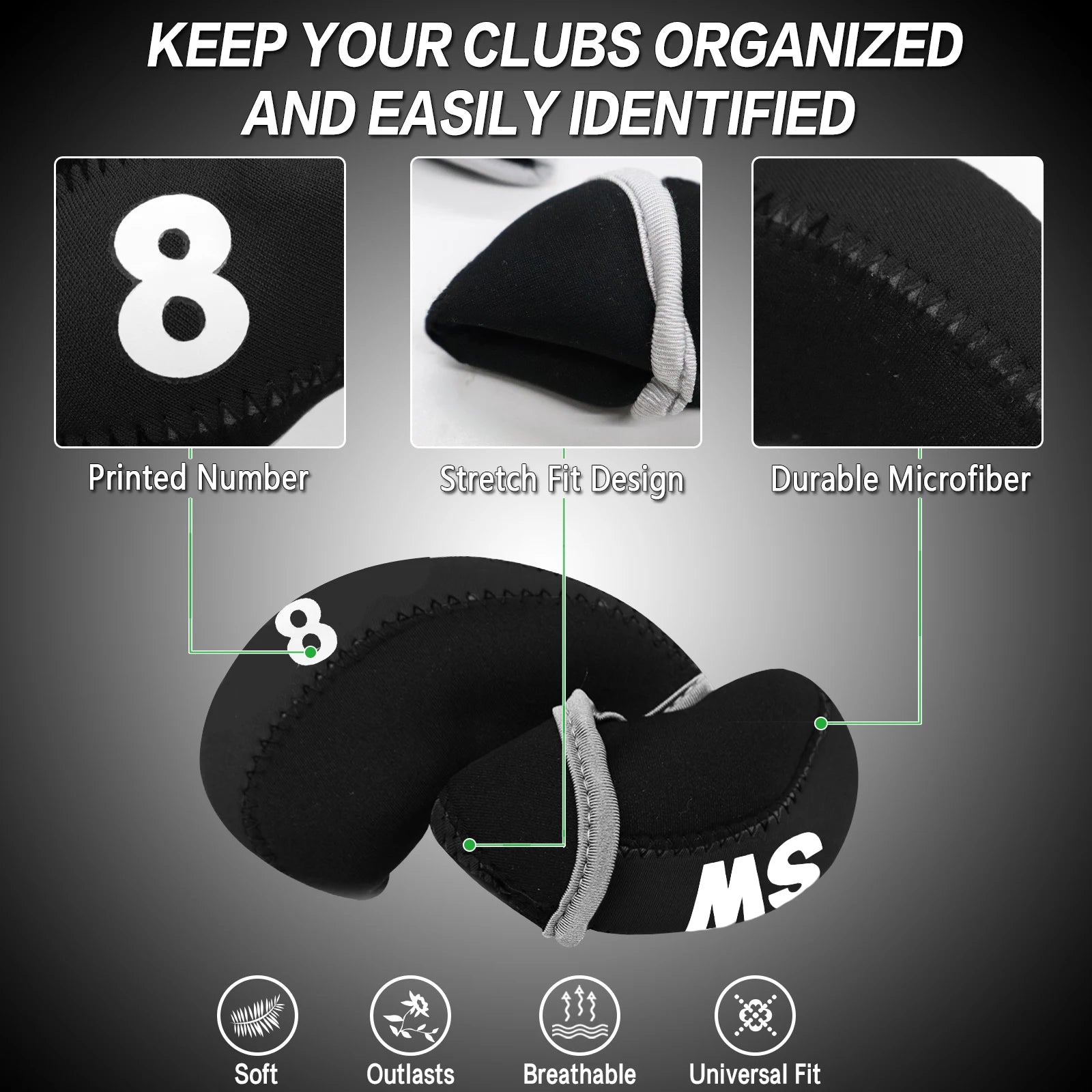 Golf Iron Head Covers 10pcs Set with Putter Protector, Lightweight & Durable for Easy Transport, Universal Fit for All Iron Club