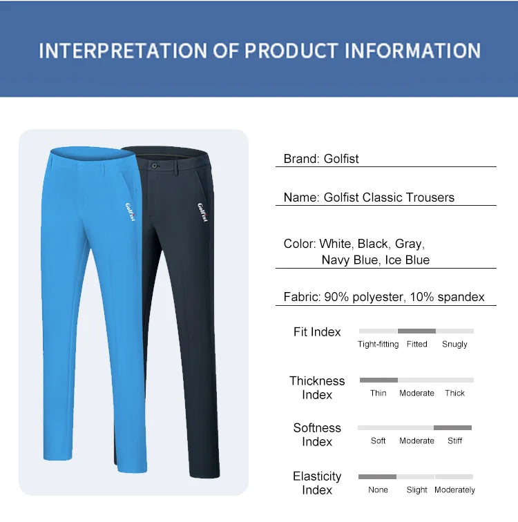 Golfist Golf Men's Summer Sports Pants Breathable Quick Dry Elastic Trouser Slim Fit Trousers Golf Tennis Sports Trousers
