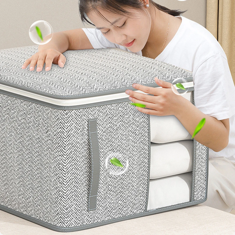 Gray Clothes Organizer Bag, Quilt Storage Bag, Wardrobe Clothes Sorting Bag, With Window Storage Bag Waterproof Storage Bag