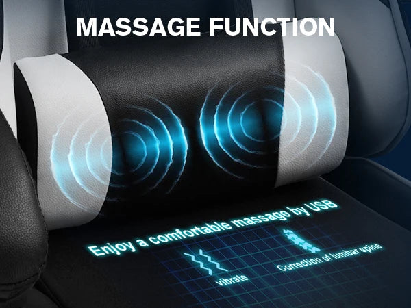 【Most Comfortable And Relaxing】 Equipped with headrest and massage lumbar pillow; When your neck feels sore from gaming or working with head down for a long time, the headrest will relieve your fatigue; When tired from maintaining a same sitting posture, please rest assured to lean back and charge your waist pillow, it will relax your tired waist energetically <br>