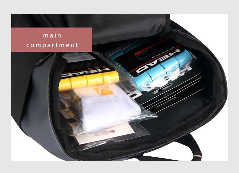Waterproof fabric, for 1-2 tennis rackets, clothes, Independent shoes compartment