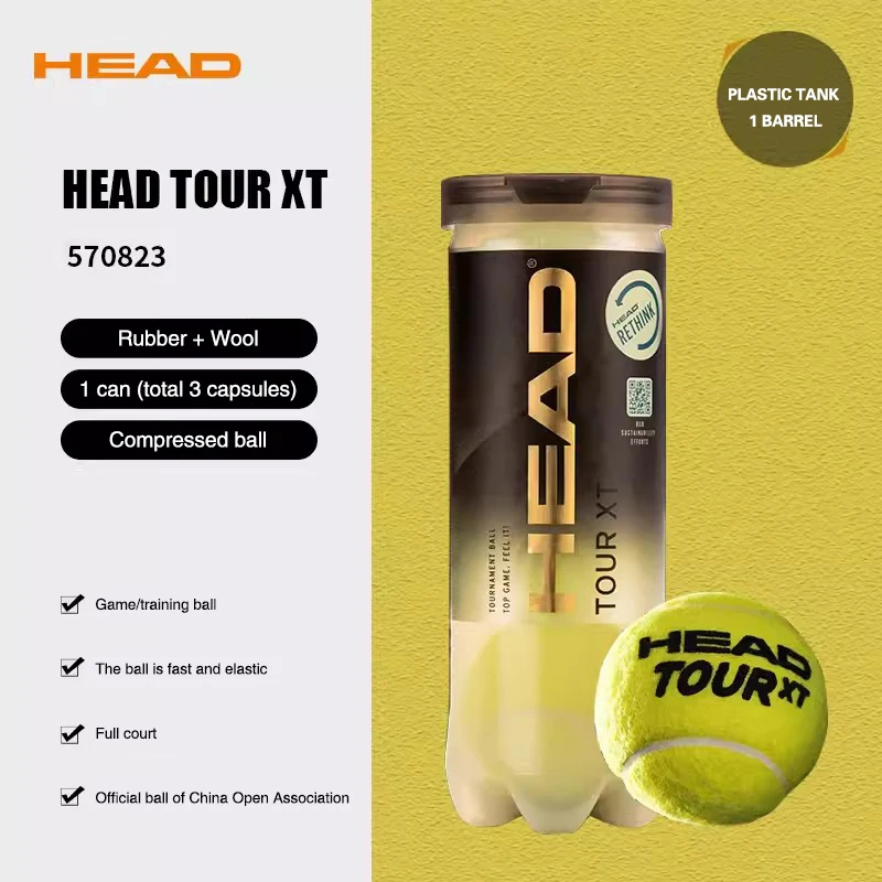 HEAD Tour XT Tennis Professional Tennis Game Training Ball Masters Ball Rubber Canister Single Practice Gold 3 Pcs 1 Can