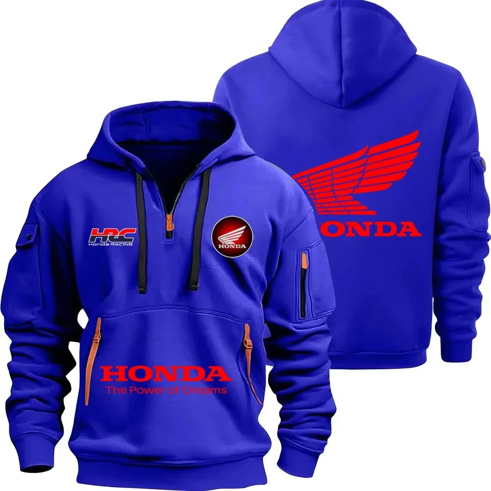 Honda zipper hoodie outdoor sports enthusiasts 2025 new men and women fashion half zipper pocket spring and autumn hoodie