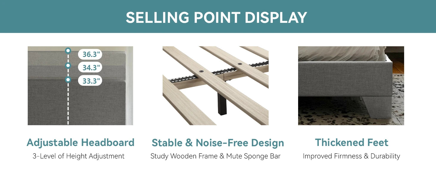Adjustable Headboard Comfort – Customize your ideal backrest height for reading, streaming, or relaxing in bed—comfort that adapts to your lifestyle