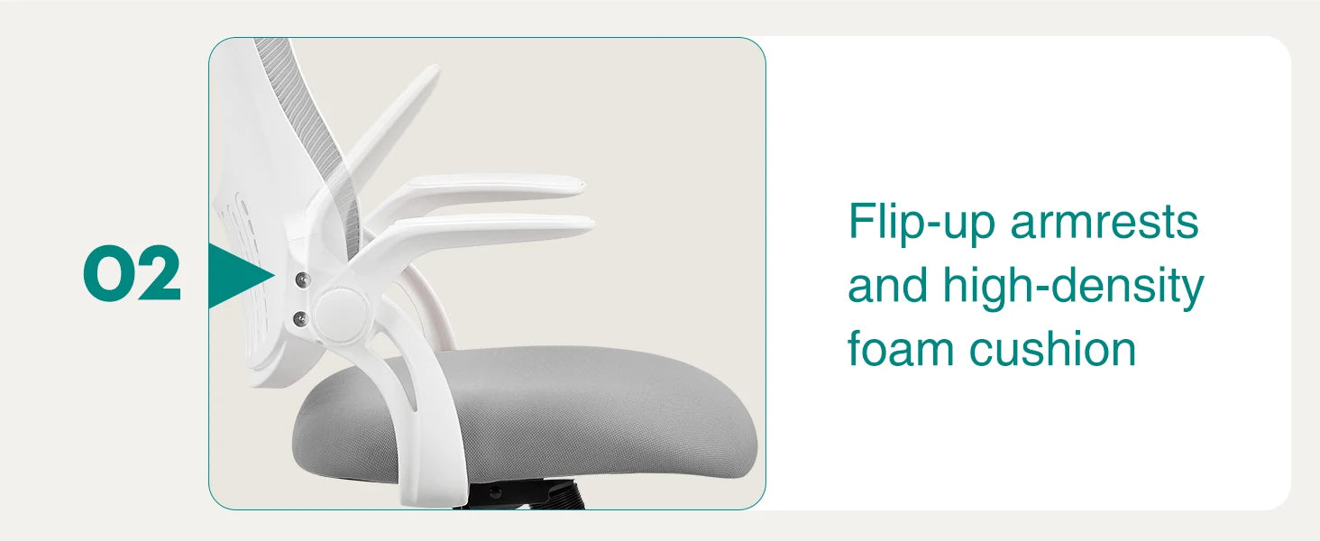【Space-saving】Flip-up armrests are available and won't be in your way when not in use. The Armrests of the computer chair provide comfortable support for your arms and can be flipped up to save space effectively while not in use. It is perfect for the office, bedroom, study room, living room, or gaming room.