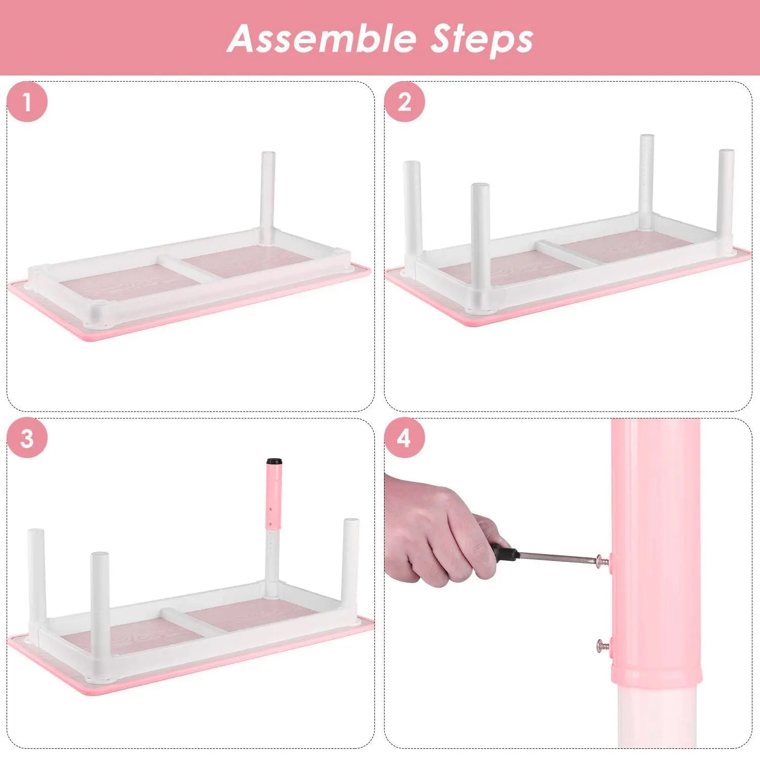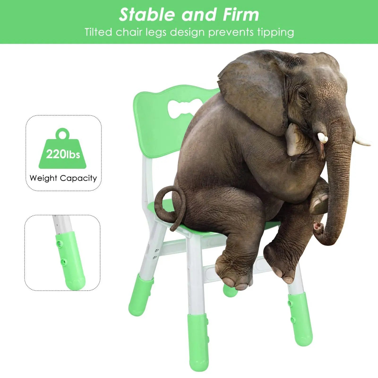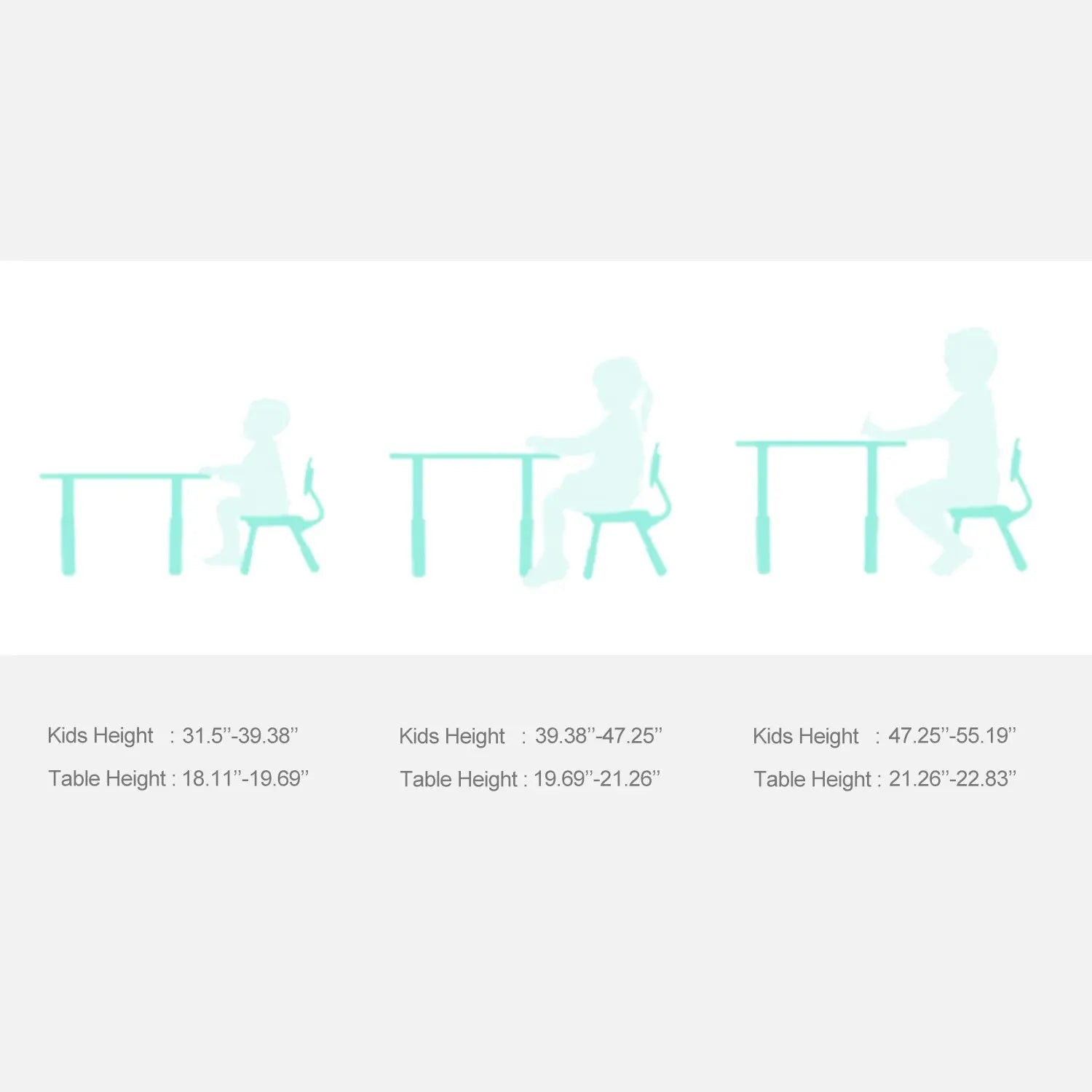 HEIGHT ADJUSTABLE DESK & SEAT: There are 5 steps for the table from 48 to 60cm, 3 steps for the chairs from 53 to 57cm, with 48*120cm table top size, suitable for boys and girls from 2 years to 10 years, 1 adjustable Table mat effectively solve the problem of uneven floor; Slanted legs prevent children from tipping over while playing.