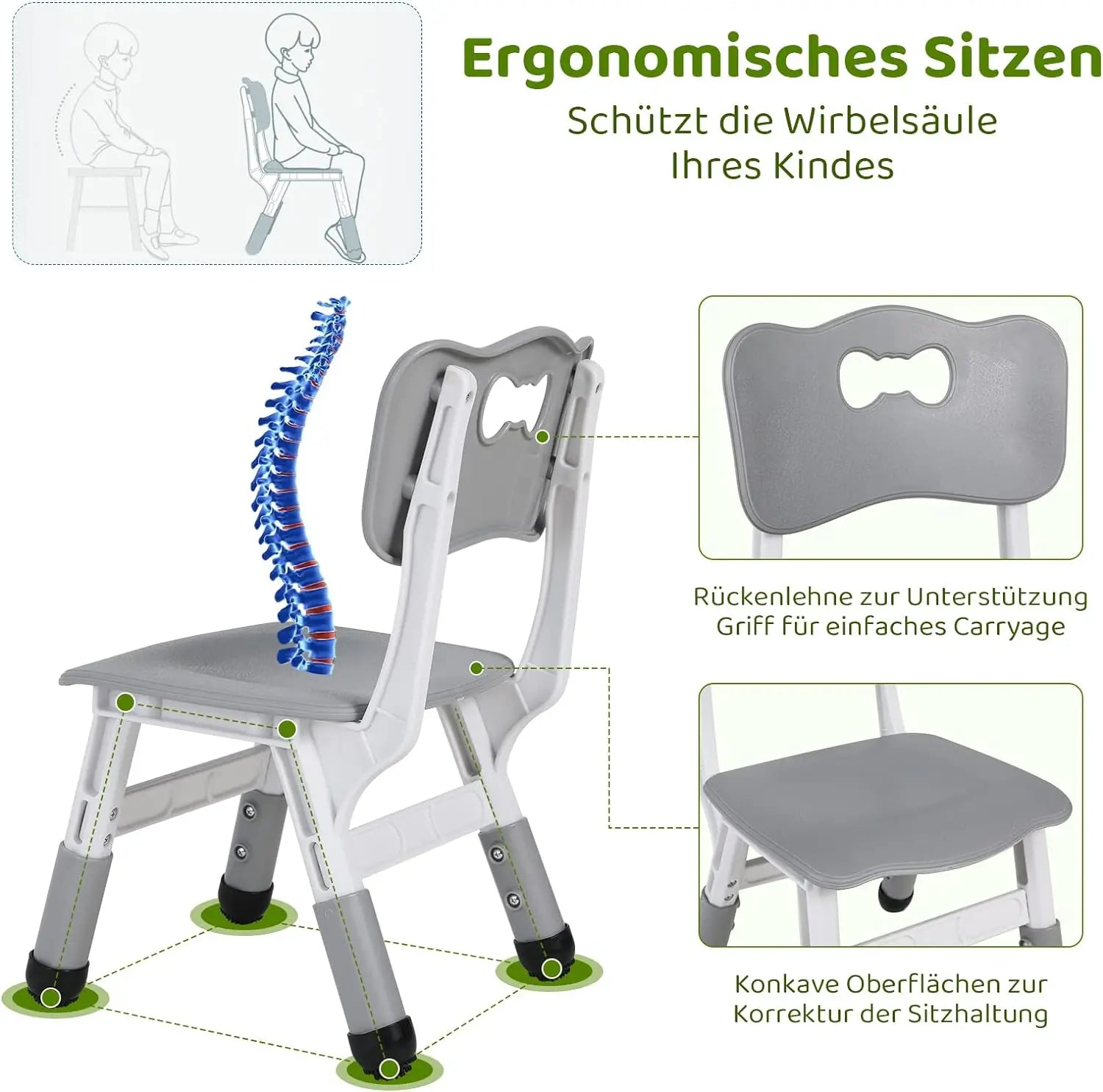 CHILD-FRIENDLY CHAIR: Breathable rosette hole for easy handling, veins for anti-slip, special cutouts on backrest and seat plate to protect the spine & correct sitting posture. Suitable for classroom, study, children's room, kitchen, etc. Great gift for Christmas, Thanksgiving, birthday, etc.