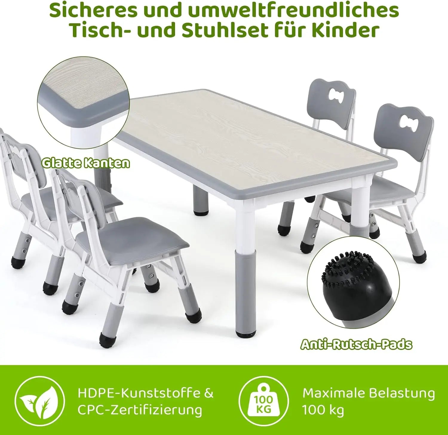 STURDY DURABLE TODDLER AND CHAIR SET: LAZY BUDDY kids table set has passed CPC physical and chemical safety test and will never crush or hurt children. The children's table and chair set is made of environmentally friendly, non-toxic HDPE material, which is not brittle and easily deformed. Weight capacity chairs: 100 kg, weight capacity table: 100 kg
